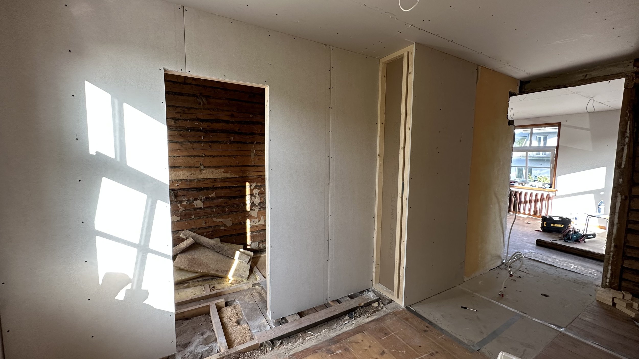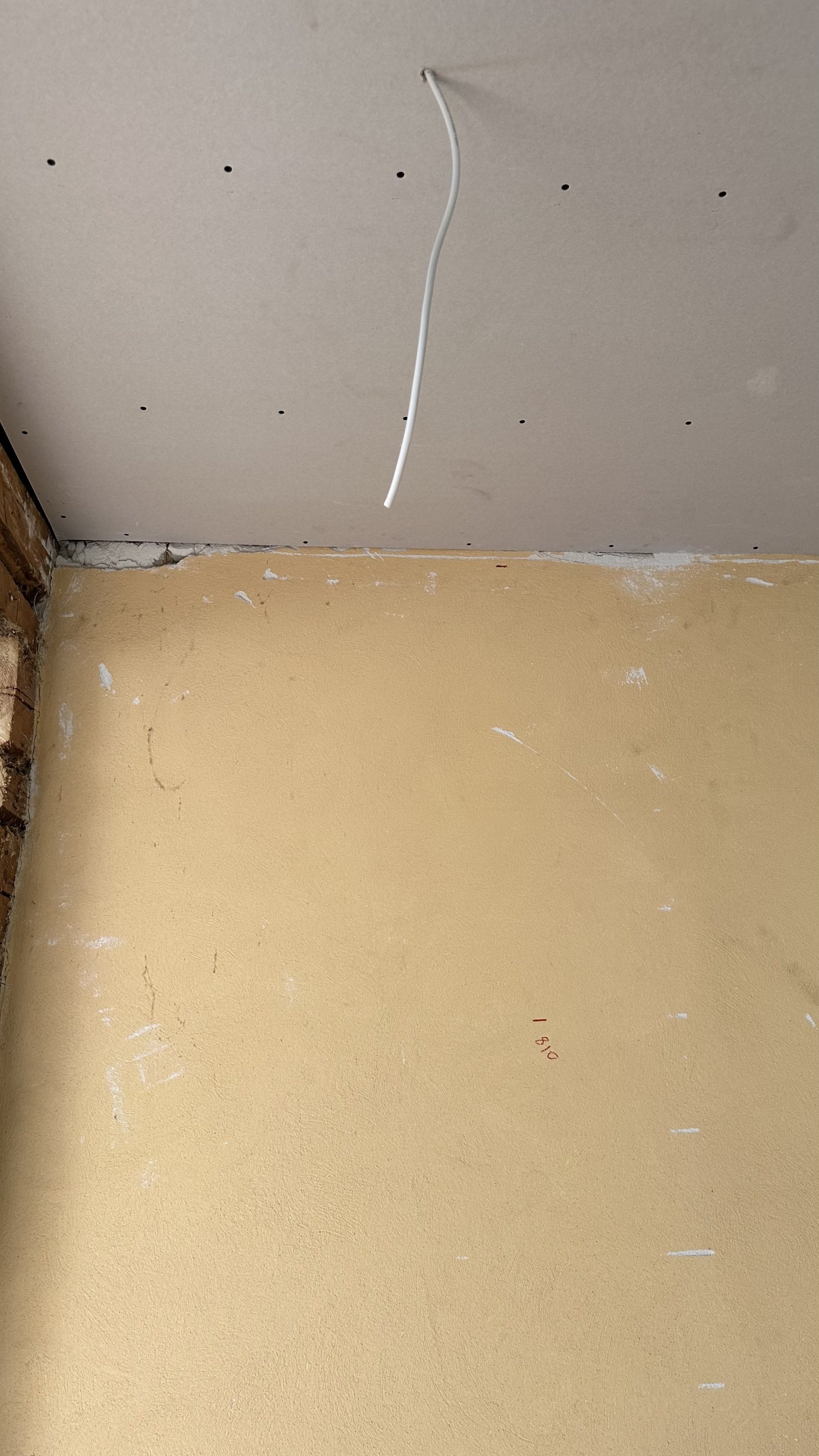 Laes on kipsplaadid ning seinas on kas samuti kipsplaat (uued seinad) või on vaja töötada “vanade” seintega (pildid lisatud). Lagi ja seinad tulevad samas toonis valge.