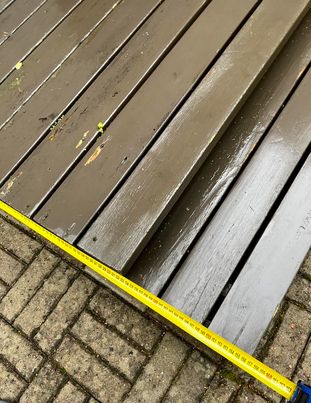 Hinnapakkumine pruunist immutatud lauast terrassile.