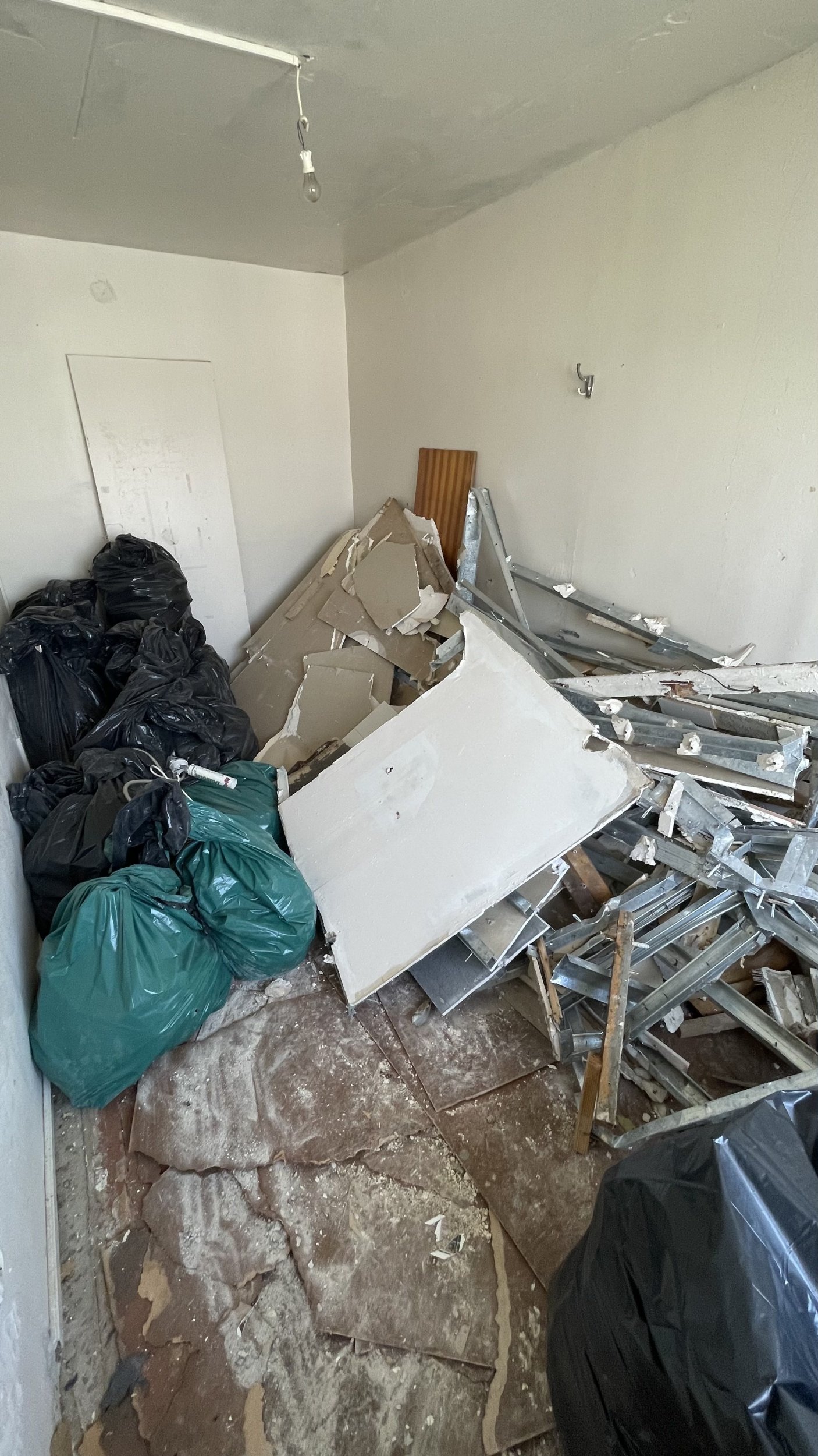 Vaja on Paldiskis (5. korrus) viia ära ehitusprügi ning utiliseerida. m3 kogust raske öelda, kuid valdava mahu annab profiilidel kinni olev kipsplaat, st maht piltide peal petlik. Peeneb praht kenasti kottidesse pandudSekka 1 kott kivivilla ning hunniks Narva plokki 100mm paksusega.