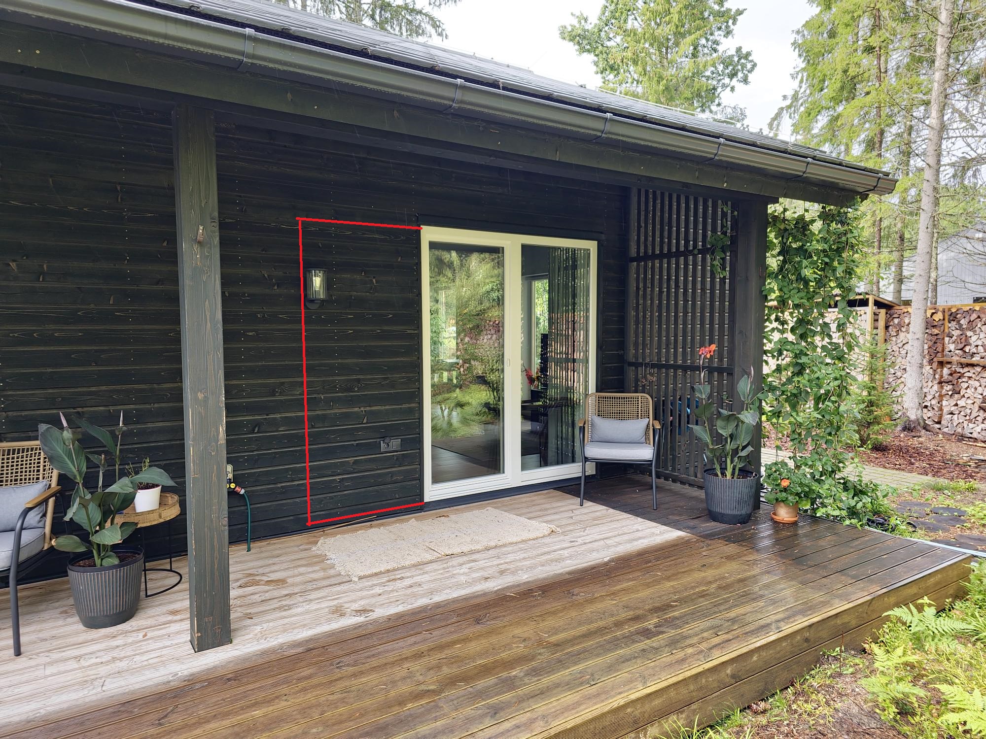 Terrassiakna (1800x2100mm) eemaldamine ja ava laiendamine 1,1m võrra. Seina kandevõime tagamiseks tuleb paigaldada seinakonstruktsiooni sisse liimpuidust lisasillus ristlõikega 100x278mm (tugevusklass GL28h). Pärast lisasilluse paigaldamist tuleb taastada seina konstruktsioonikihid (sealhulgas auru- ja tuuletõkkekiht). Uue avatäitena paigaldatakse osaliselt lahtikäiv terrassiaken lengi mõõtudega 2870x2090mm (tellijal olemas).