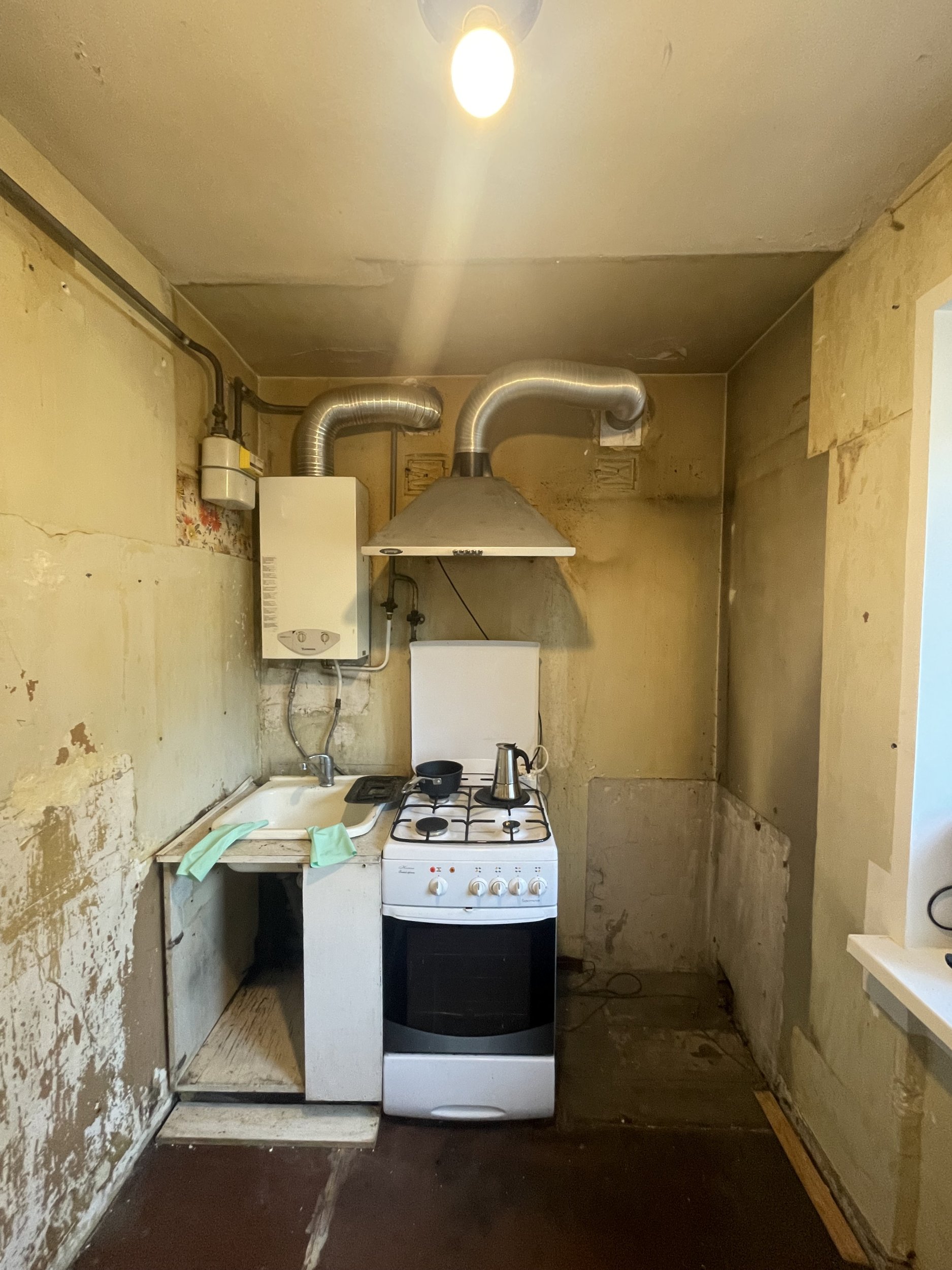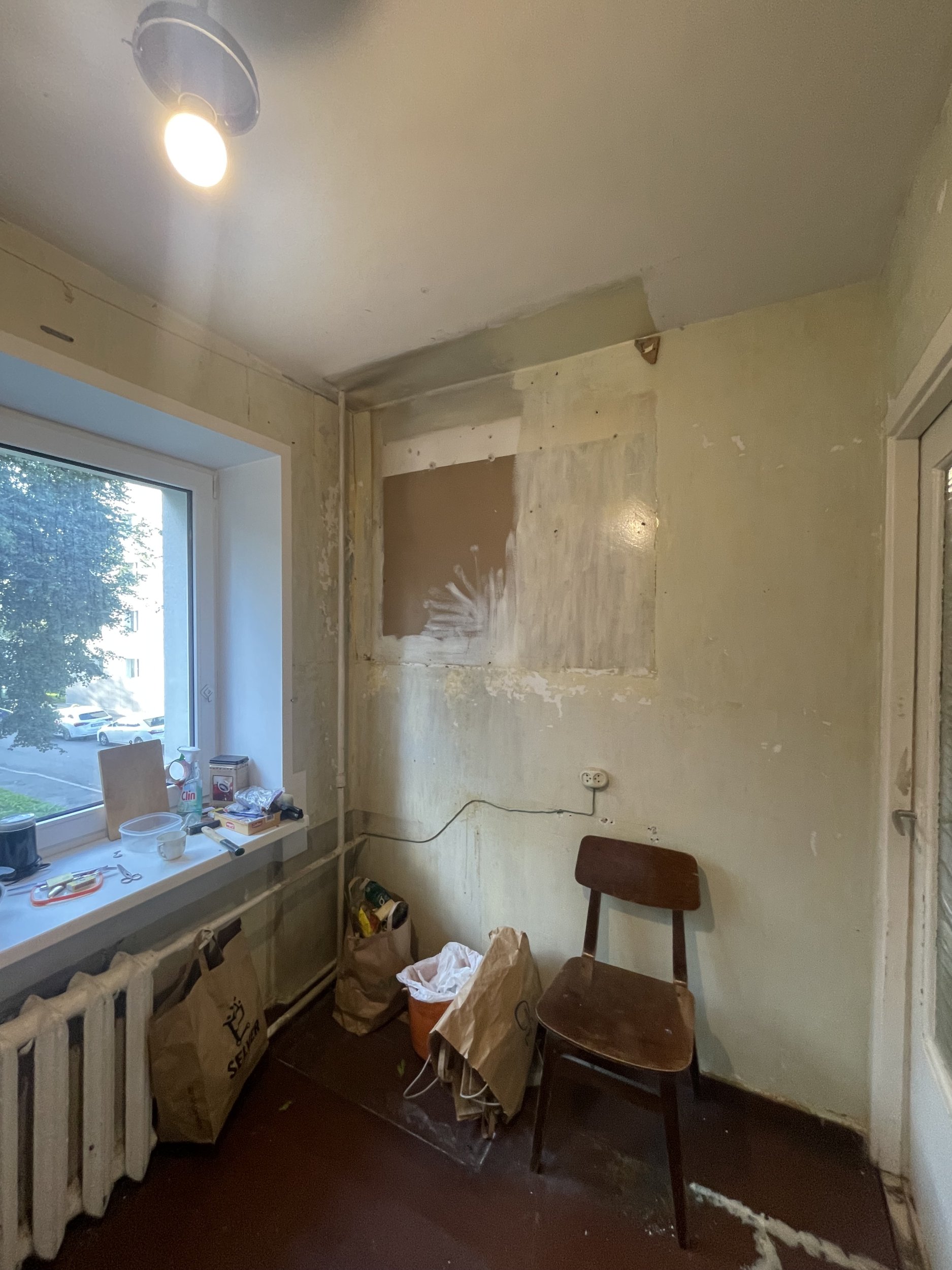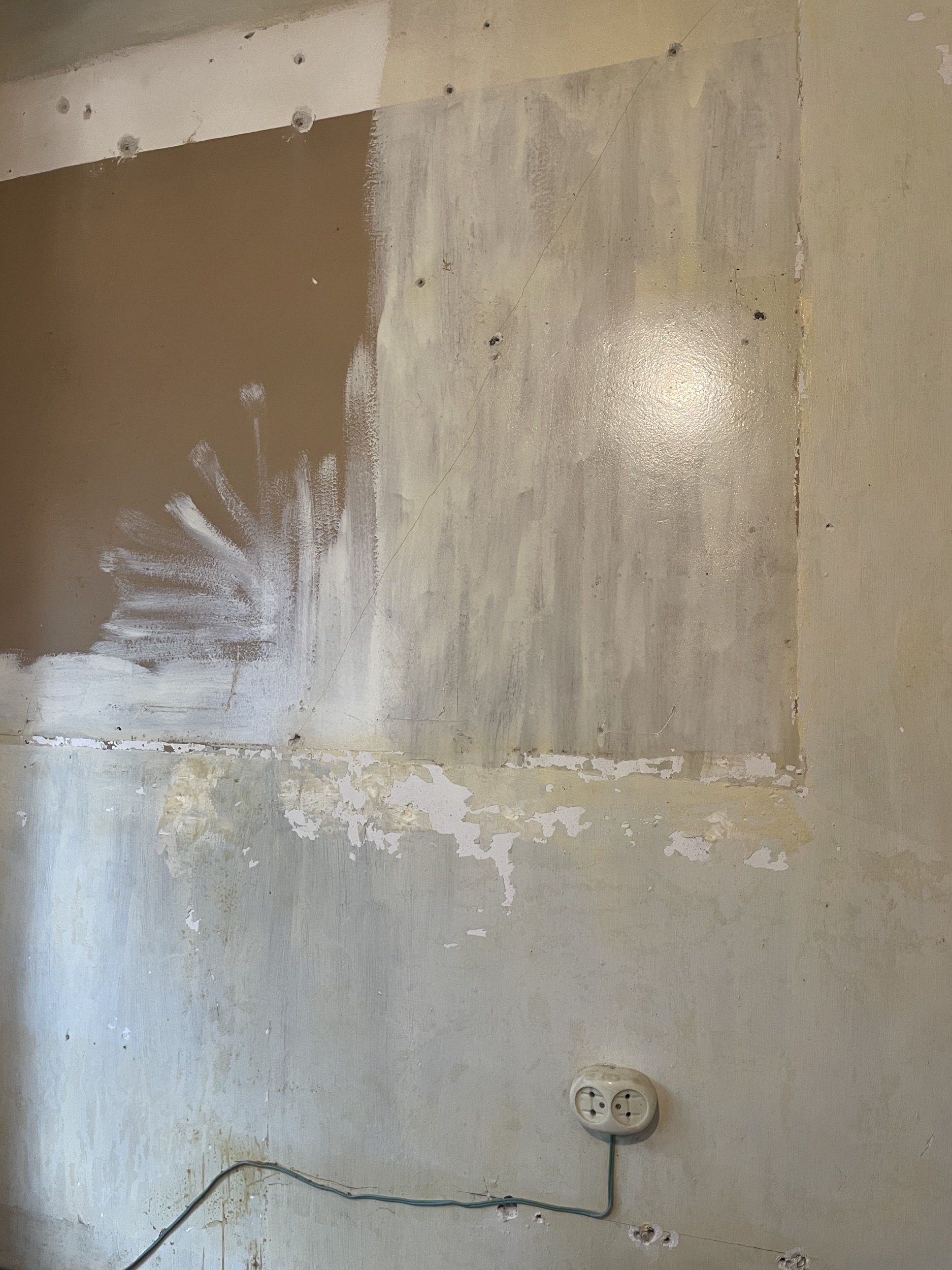 64nda aasta maja köögis seinte korrastamine. Tegu on umbes 5 ruutmeetri suuruse ruumiga.