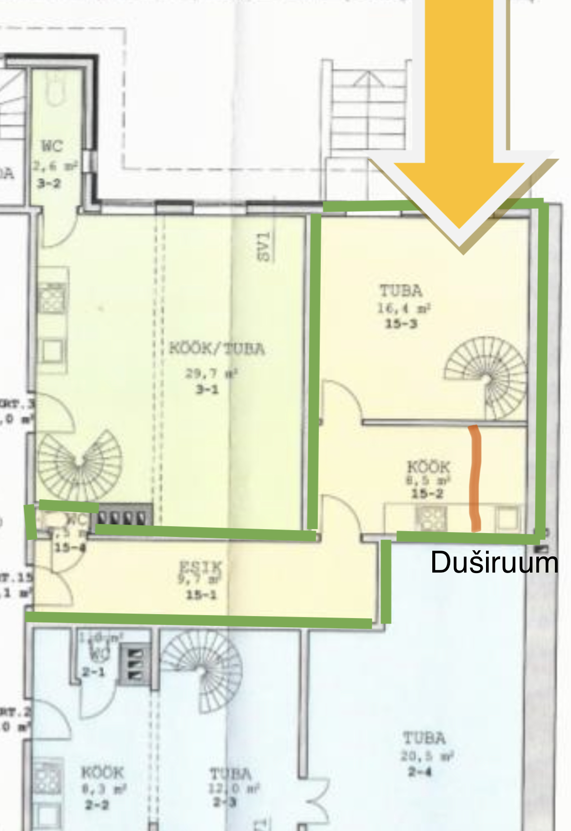 Tegemist vajab täielikult (põrand, seinad lagi) WC ja elutuba/magamistuba.