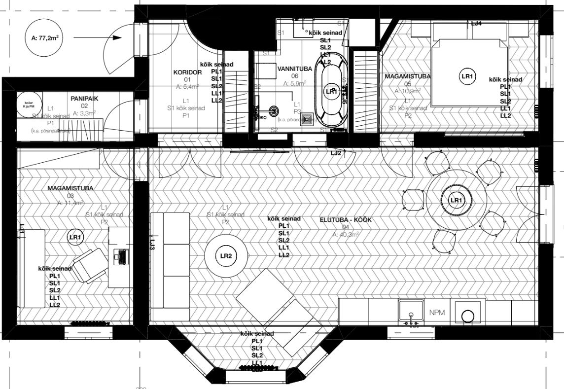 NB! Põrandaplaanis Prantuse kalasaba, aga tegelikult tuleb tavaline.