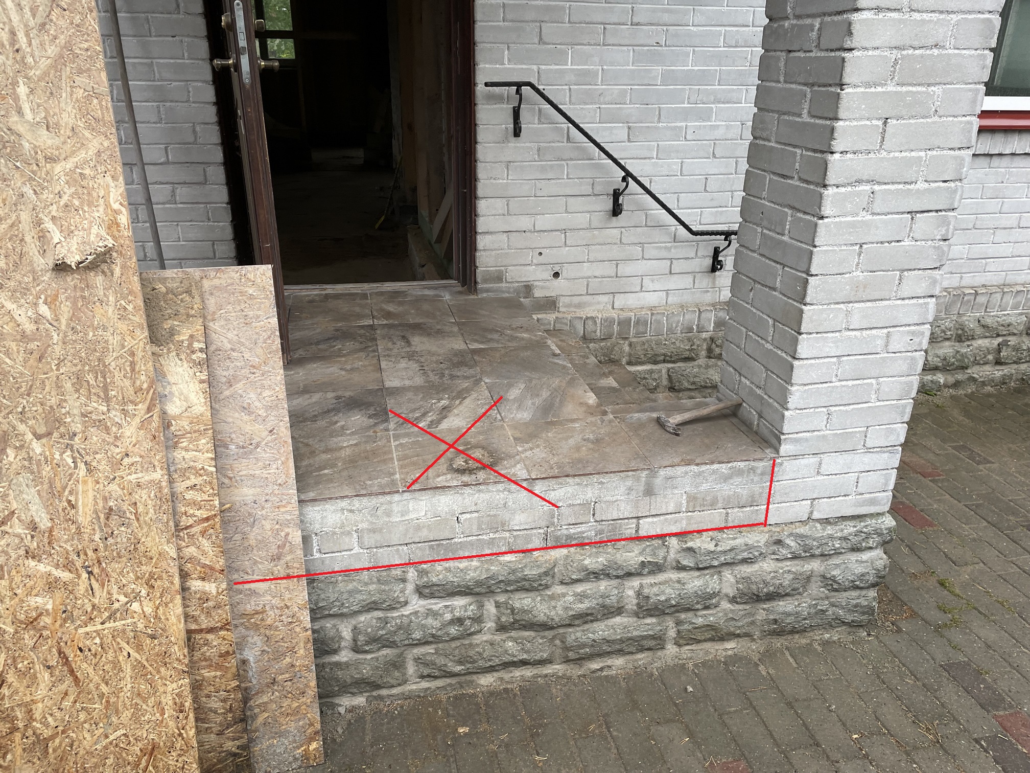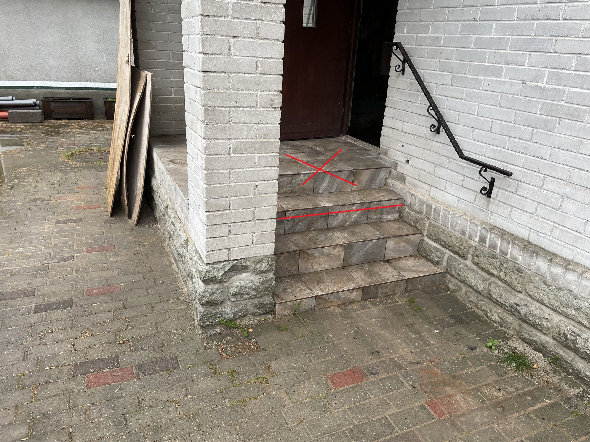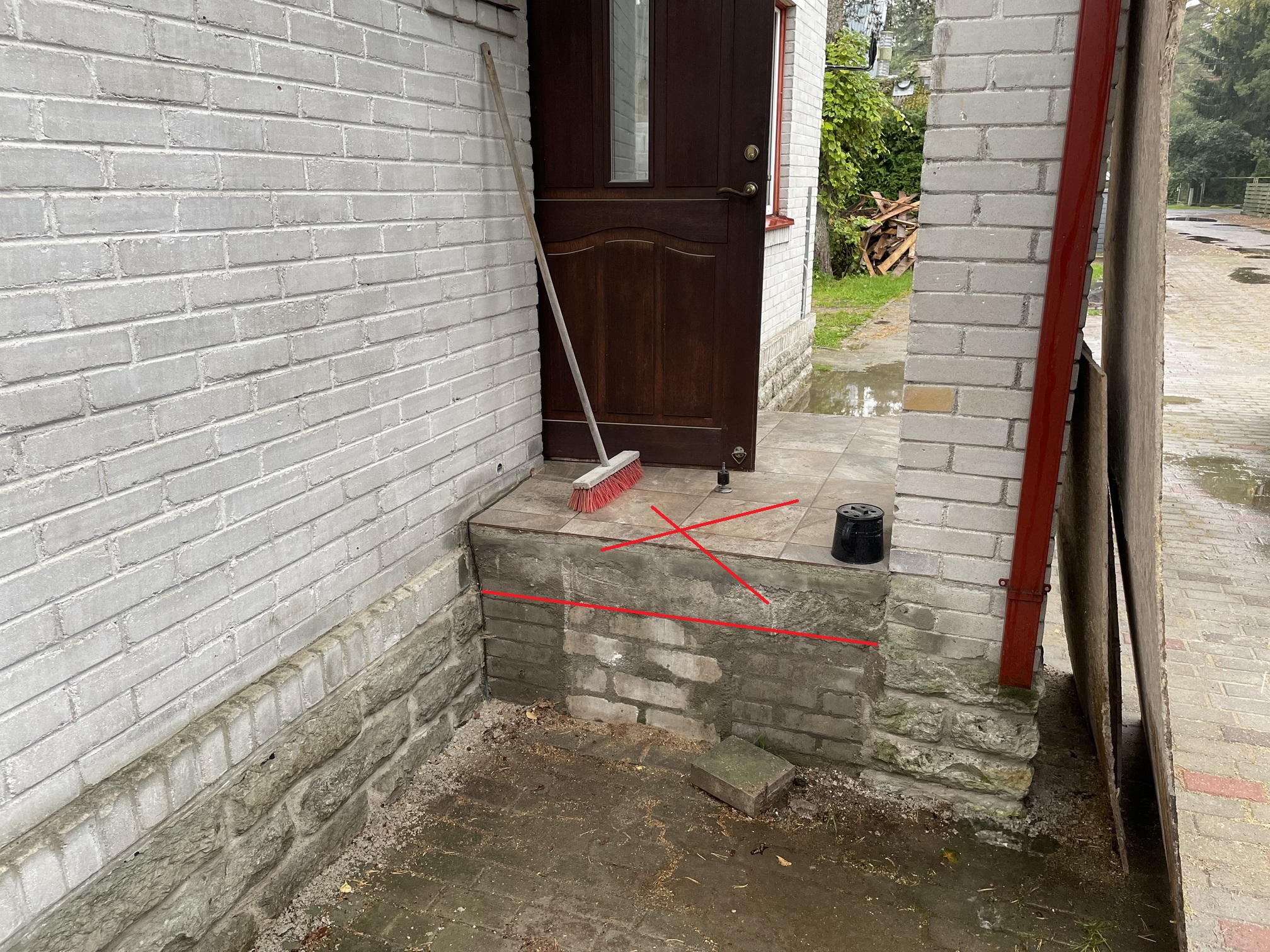Trepi kõrgus jääks paekivi vundamendi äärega tasa kuna uus välisuks läheb madalamale.