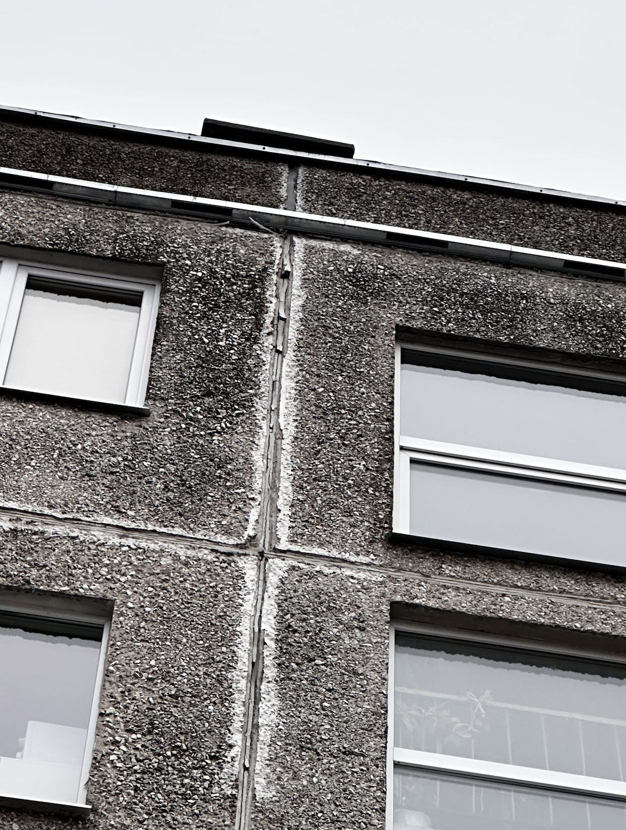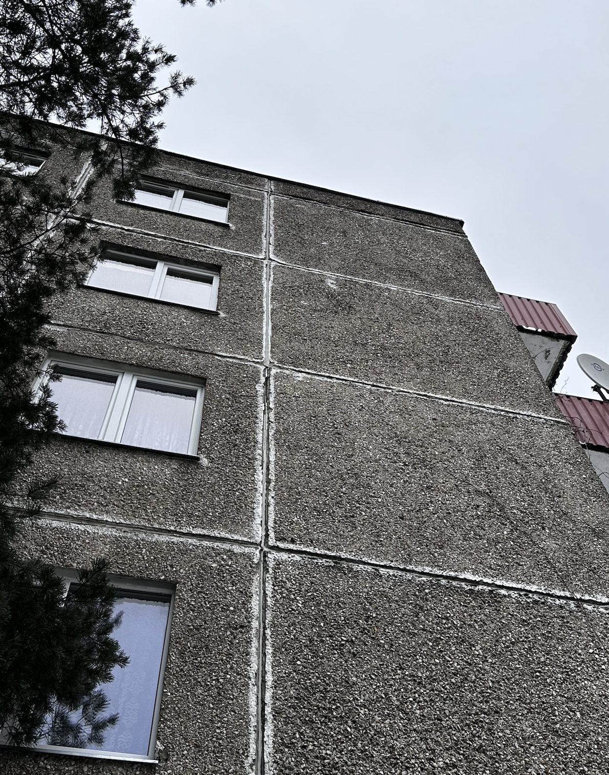 viiekorruseline maja. Maja fassaadil plaatide vahelised õmblused lekivad 4. ja 5. korruse vahel. Parandamist vajab ca 100 meetrit õmblust.