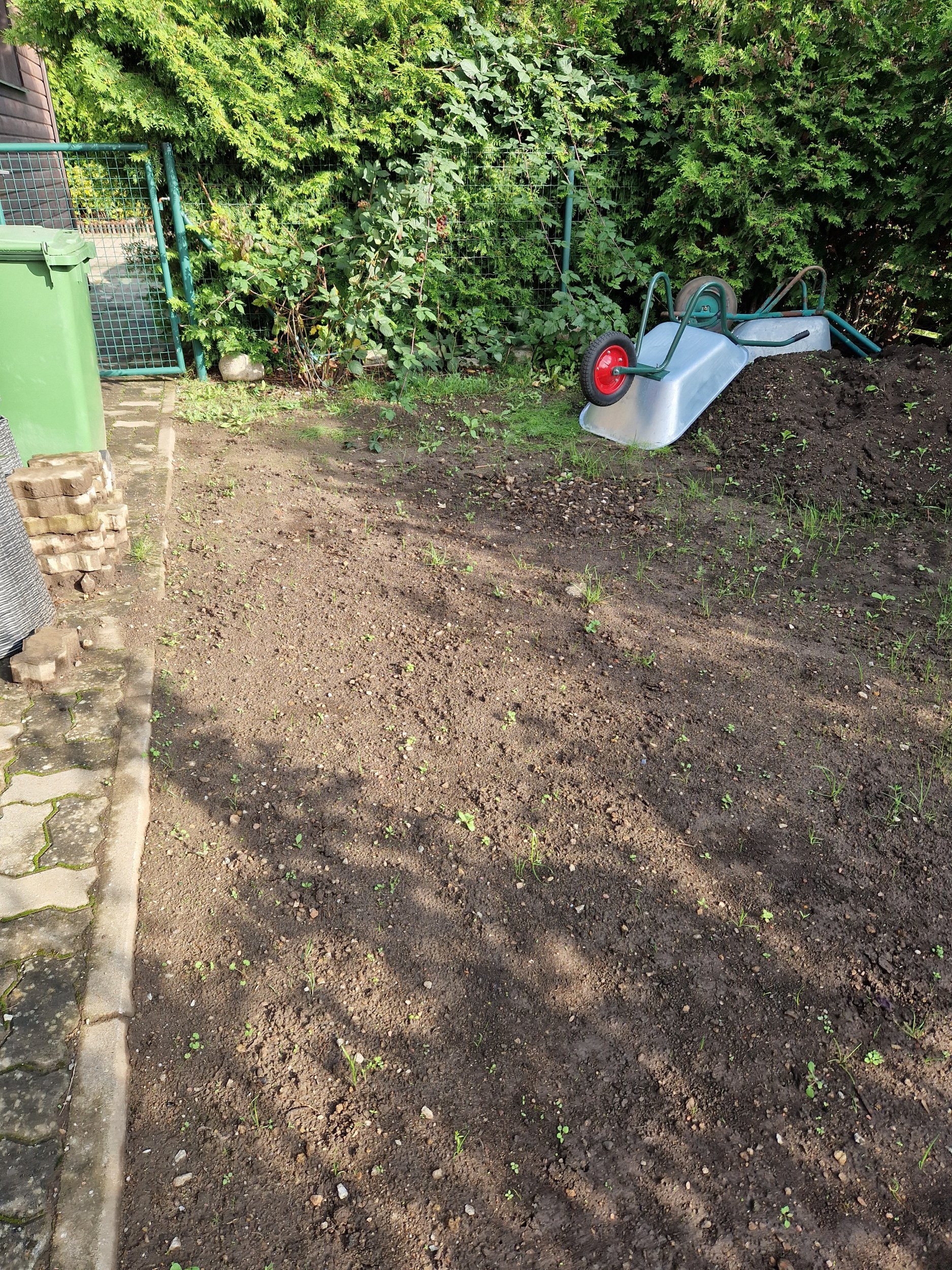 Palun pakkumist kogu tööle, mis sisaldab aluspinna ettevalmistamist ja täitematerjale, tänava- ja äärekivide maksumust, transporti ja kulusid tööjõule. Murukamar on eemaldatud, aga aluspind lõpuni kaevamata.
