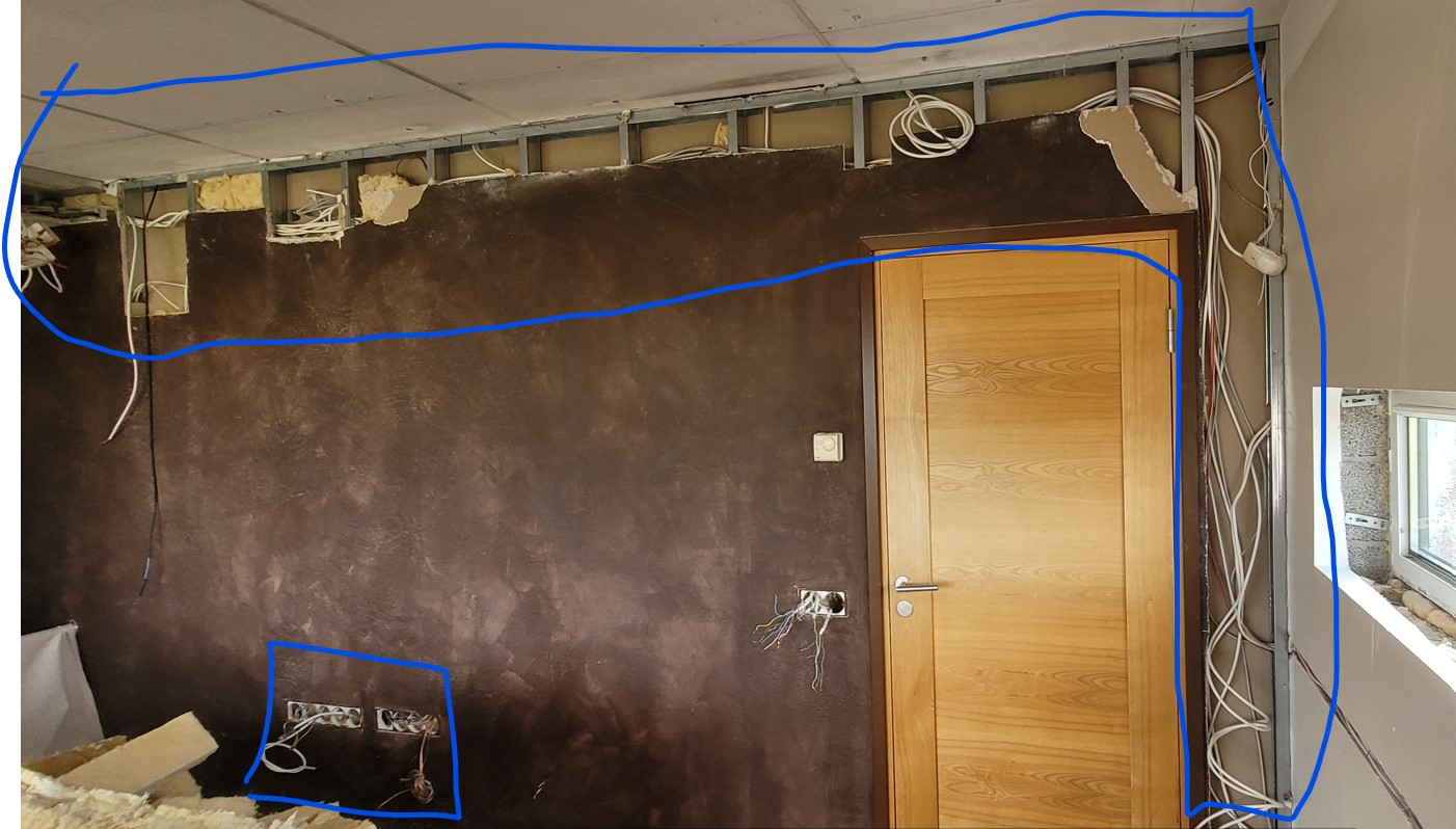 2. Seina kipsplaadi asendus olemasolevale karkassile hinnanguliselt (ft ka fotod, mõni auk võib juurde tulla) <6m2;