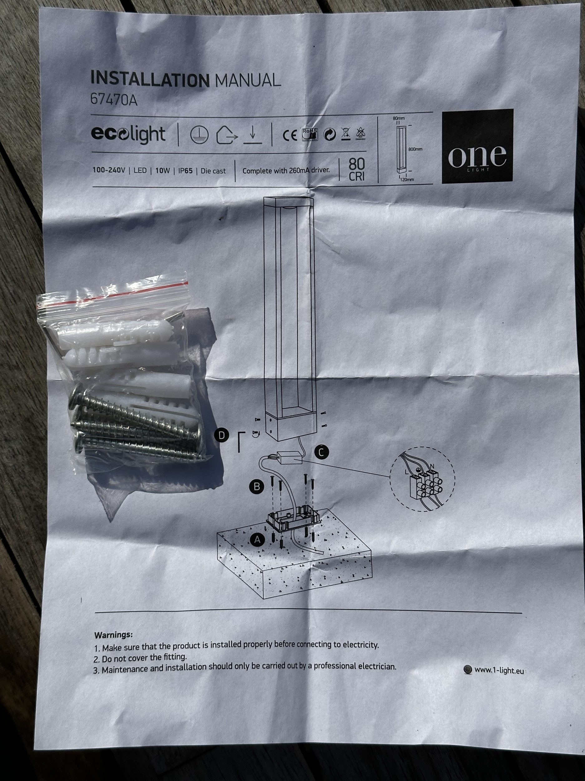 Tellija poolt on valgustid, maakaabel, hämaraandur, kruvivaiad. Kõik muud abimaterjalid tuleb töö tegijal hankida.