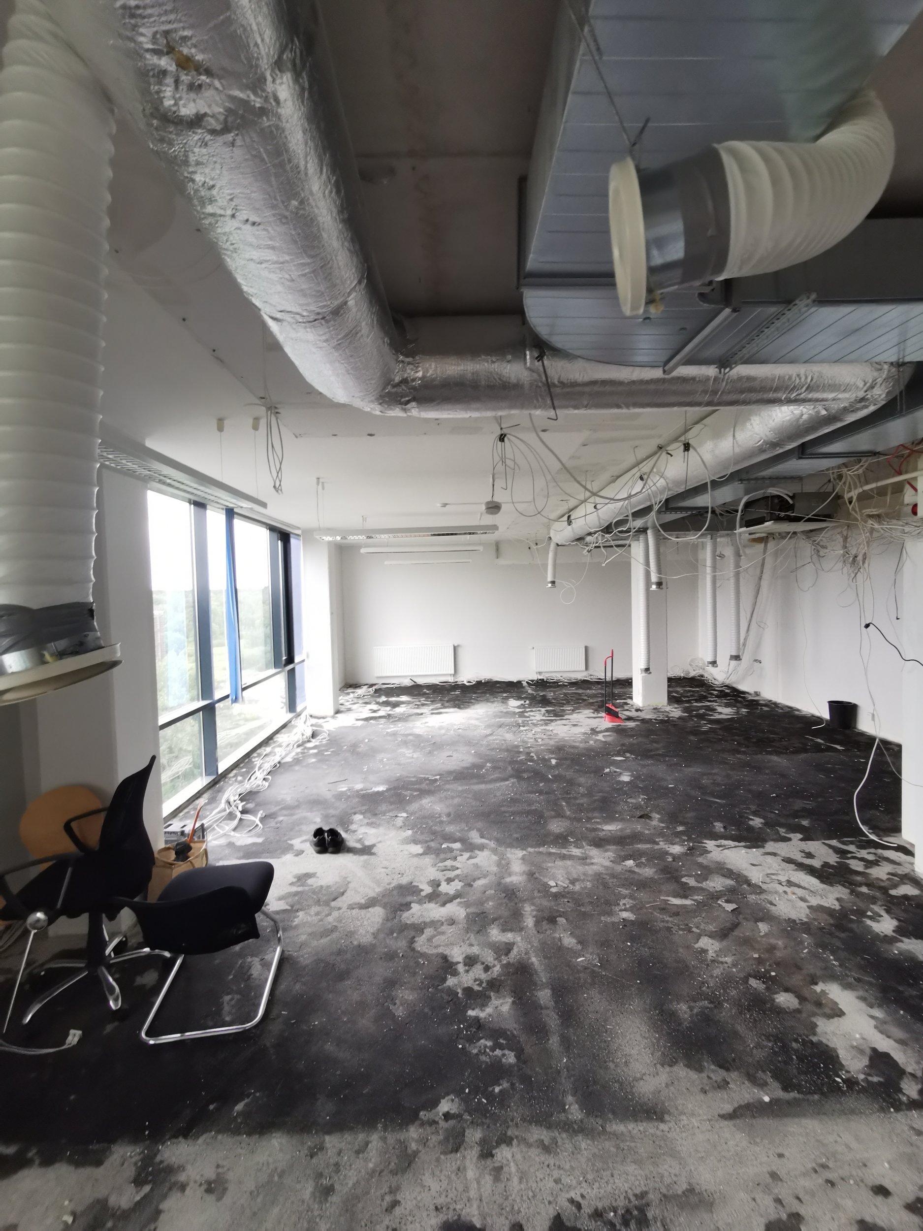 Puhastada põrand betoonile, 81 m2. Oli liimitud vaip.