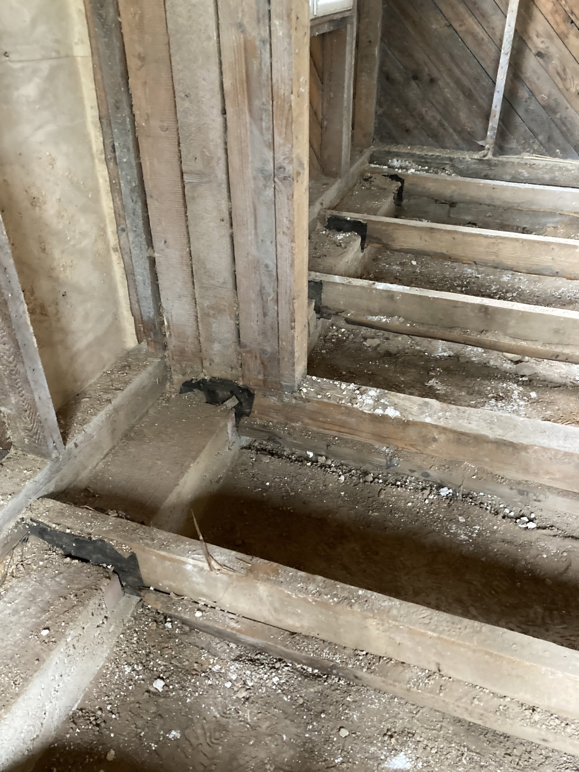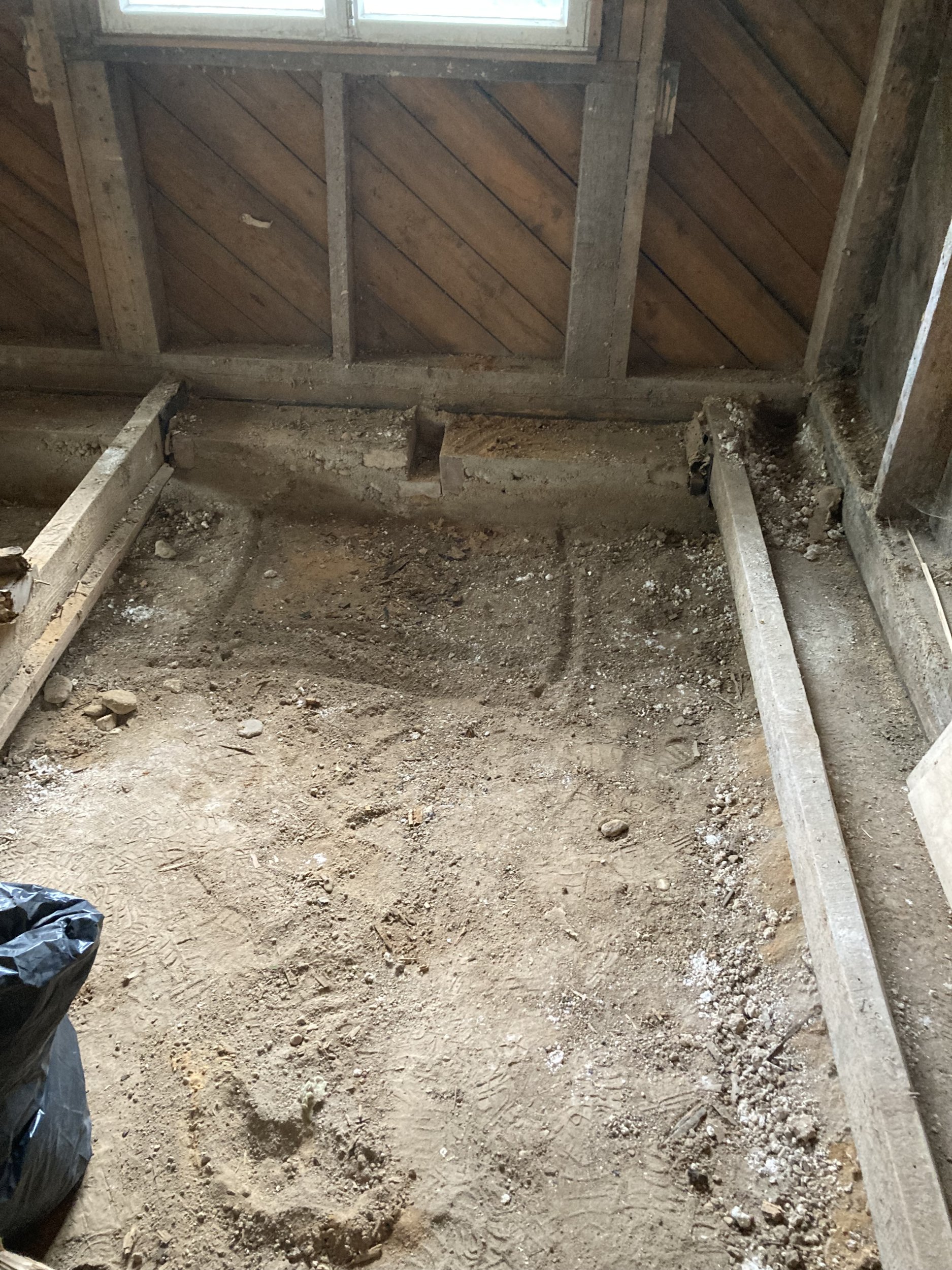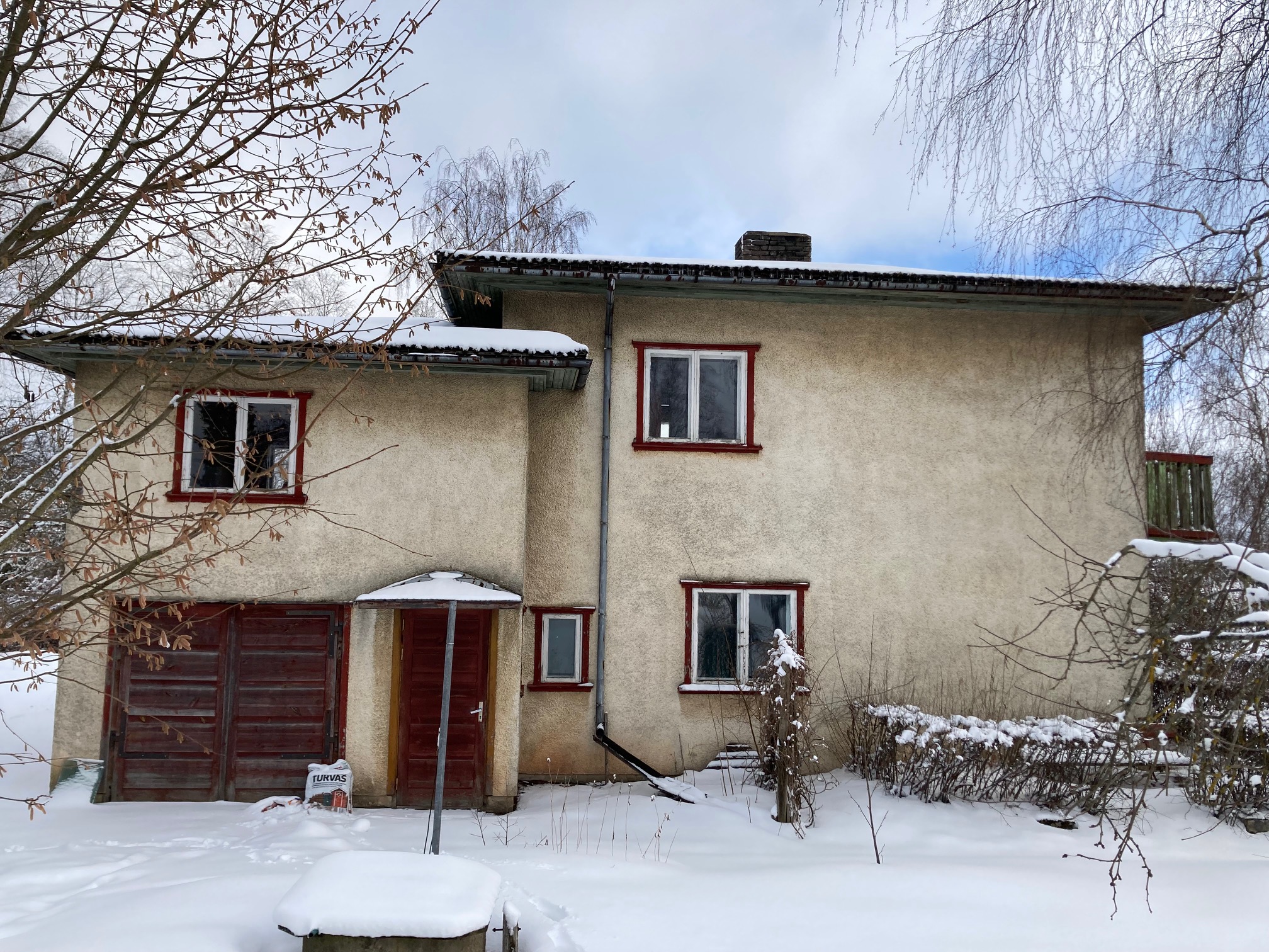 Maja on tühi, seinad ja põrandad on seestpool lahti võetud. Kogu vana soojustus eemaldatud. Väljast krohv, horis. laudis jm eemaldatud kuni diagonaallaudiseni vajalikku kõrgusesse ehk u. 30cm vundamendist. Vajadusel rohkem. Püstkarkass on elamu osas 50 (ja 125) x 125mm, majandusruumi osas 50( ja 100) x 100mm; sammuga keskmiselt u 75cm. Vana alusvöö elamu osas 25x125 +125x125; majandusruumis 50x100 +100x100.