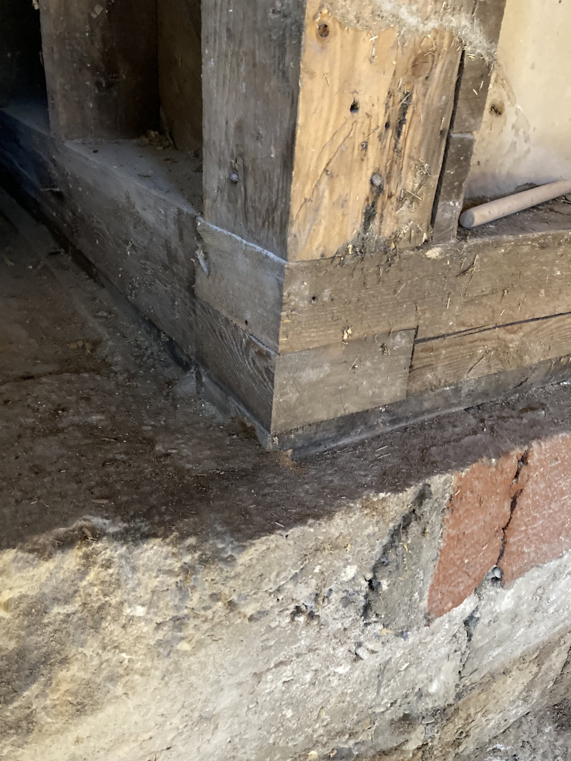 Tegemist 1950 a. 2 korruselise puitsõrestikmajaga, mis koosneb kahest osast. Vajalik eemaldada vana alusvöö koos u. 25cm kõrguse osaga püstkarkassist ja diagonaallaudisest, et asendada see 1 rea (h=185mm) Fibo U- plokiga 200mm, millesse 2 sarrust ja betoonivalu. Selle peale hüdroisolatsioon ja u. 1m sammuga kiilankrutega M10 120 U-ploki betooni kinnitatud uus alusvöö sügavimmutatud 50x250mm (või 45x250) C24. Alusvöö kogupikkuseks u. 41jm.