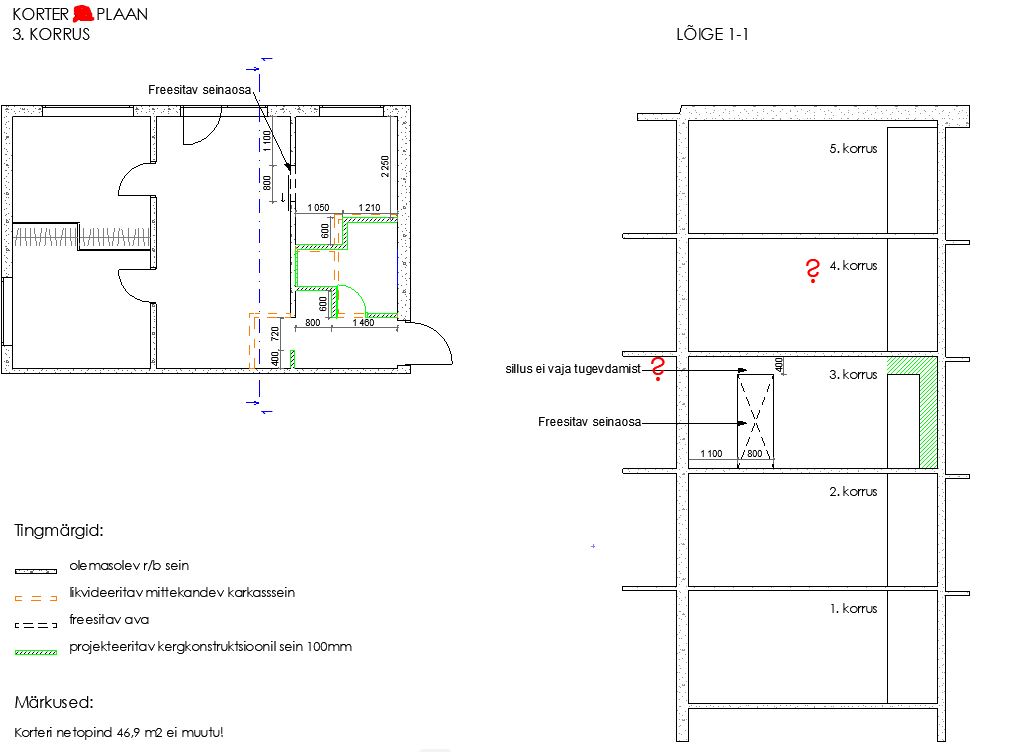Sooviks projekti pakkumist ava tegemiseks elutoa ja köögi vahele, koos ehitusteatise taotlemisega.