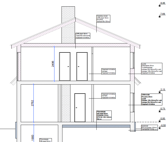 Välisseinte soojustuse paksus tuleb 17,5 cm.