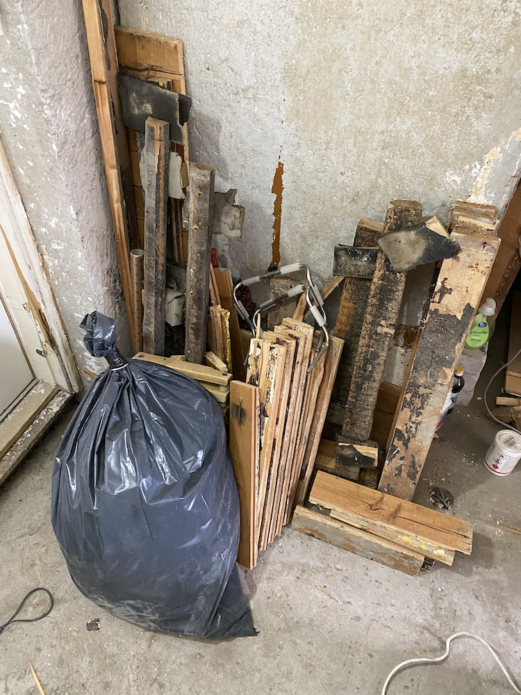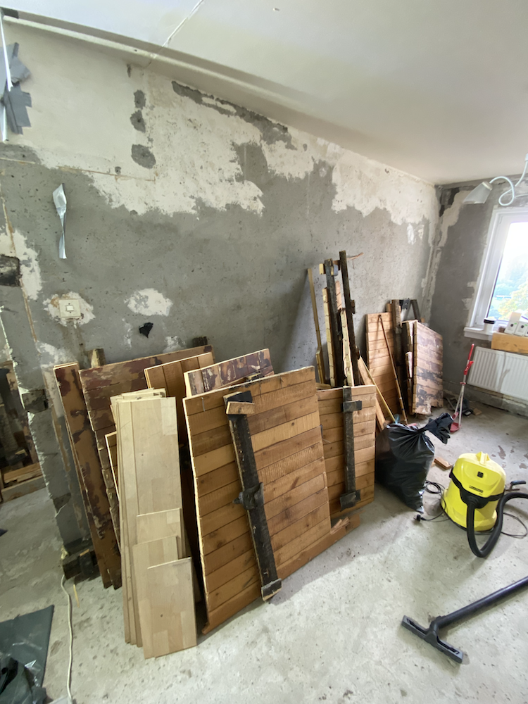 Lisandub ka väikse köögi põranda puitmaterjal. See vajab veel eemaldamist ning ei ole piltidel kajastatud.