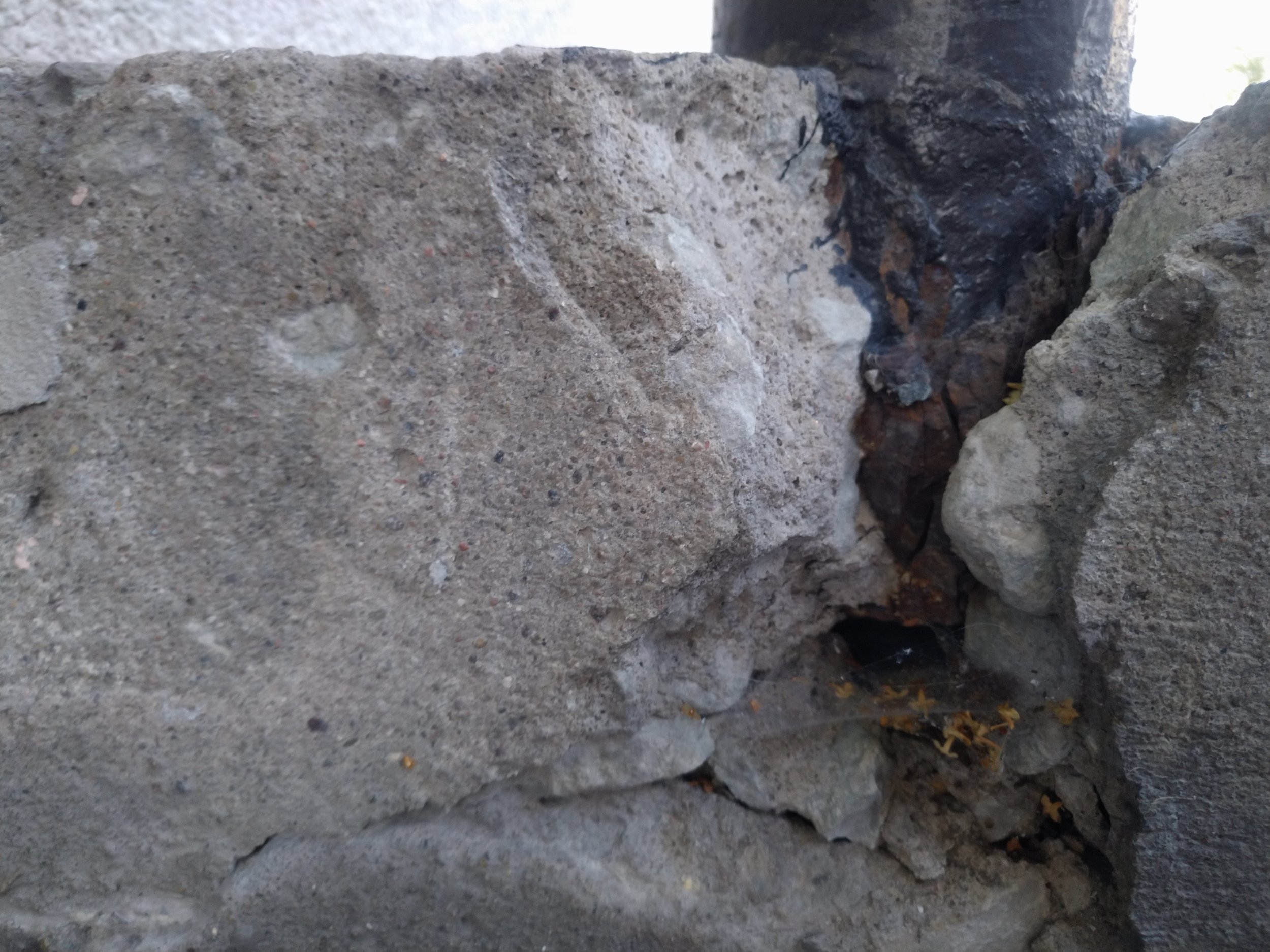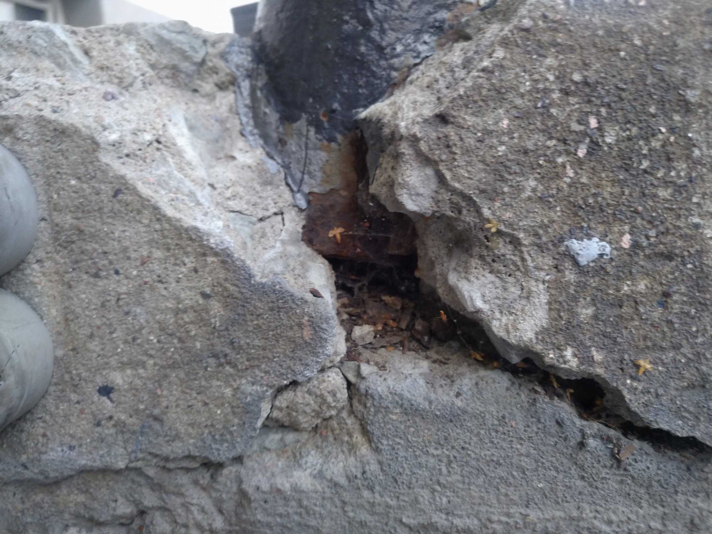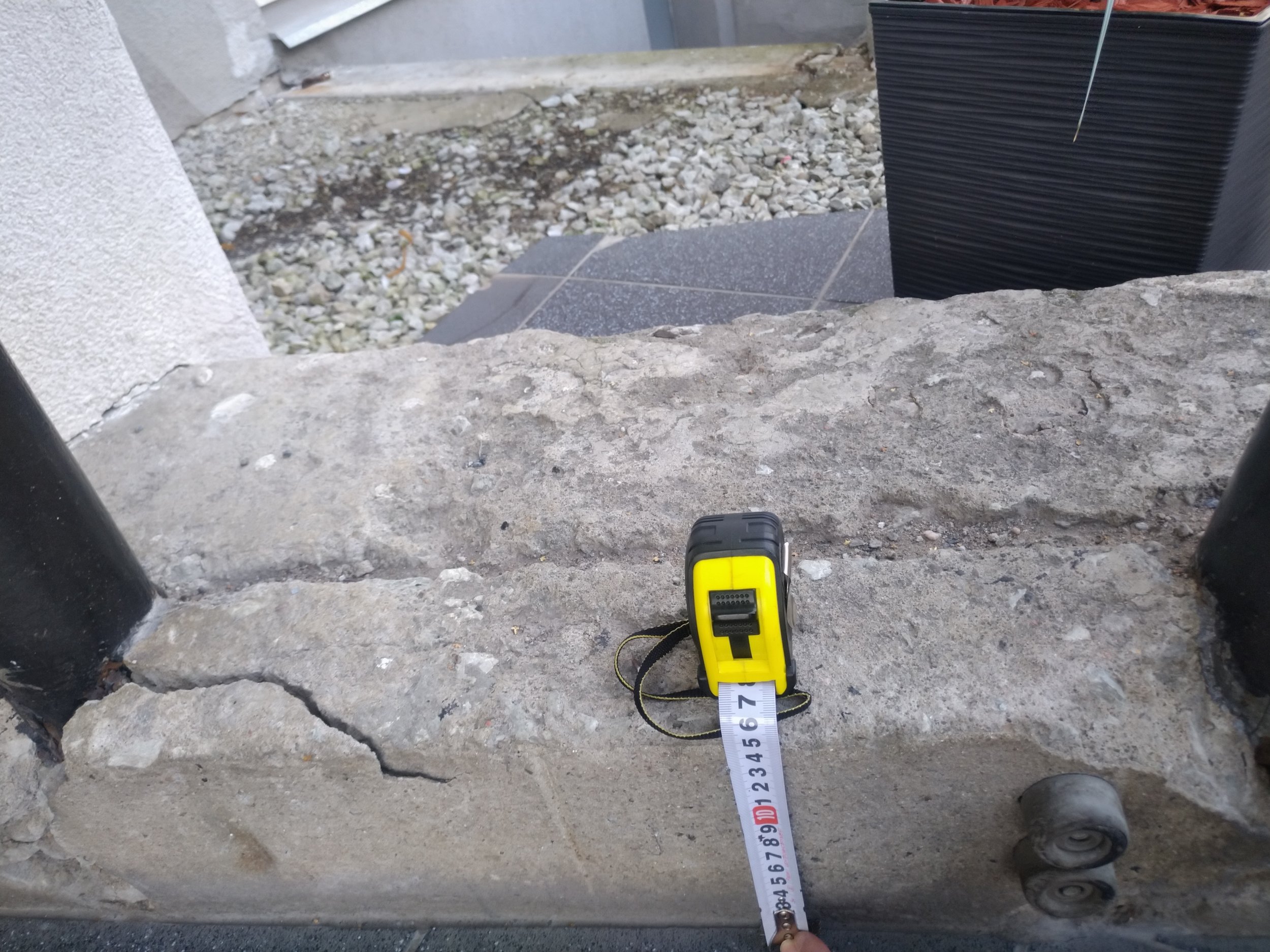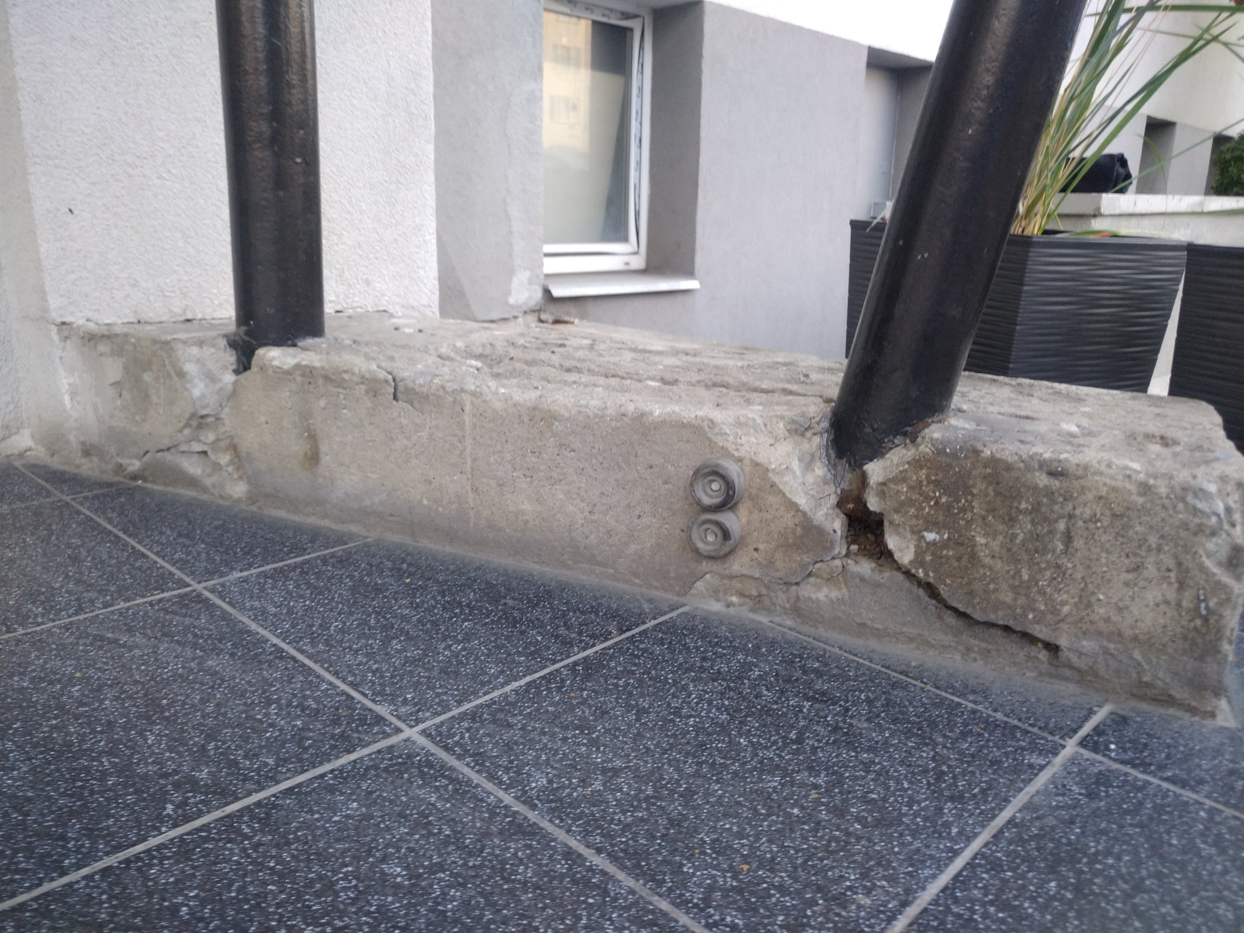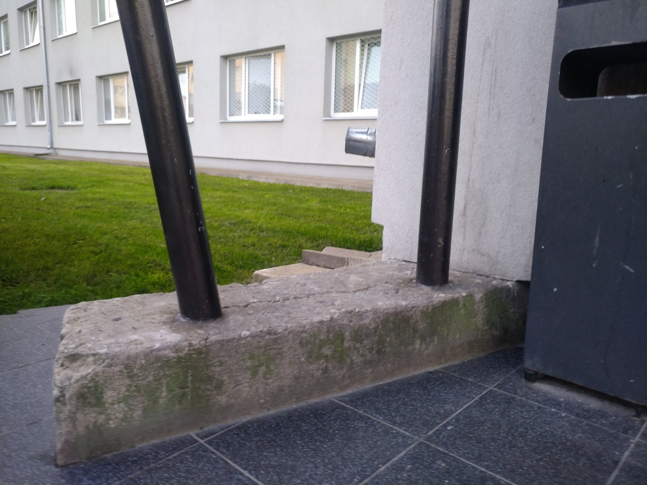 Kortermaja välistrepil toetuvad varikatuse talad trepil olevatesse betoon padjanditesse. Betoon padjandid on kehvas seisus ja vajavad eemaldamist ning uuesti valamist.