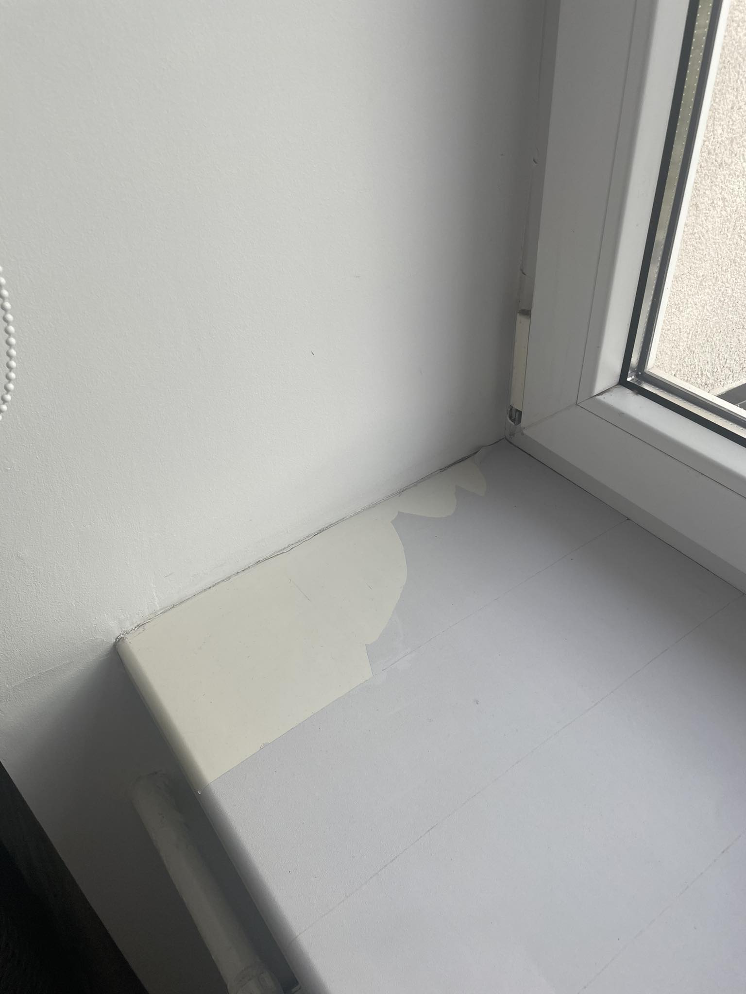Soovime vahetada katki läinud aknalaua. Aknalaud on plastikust