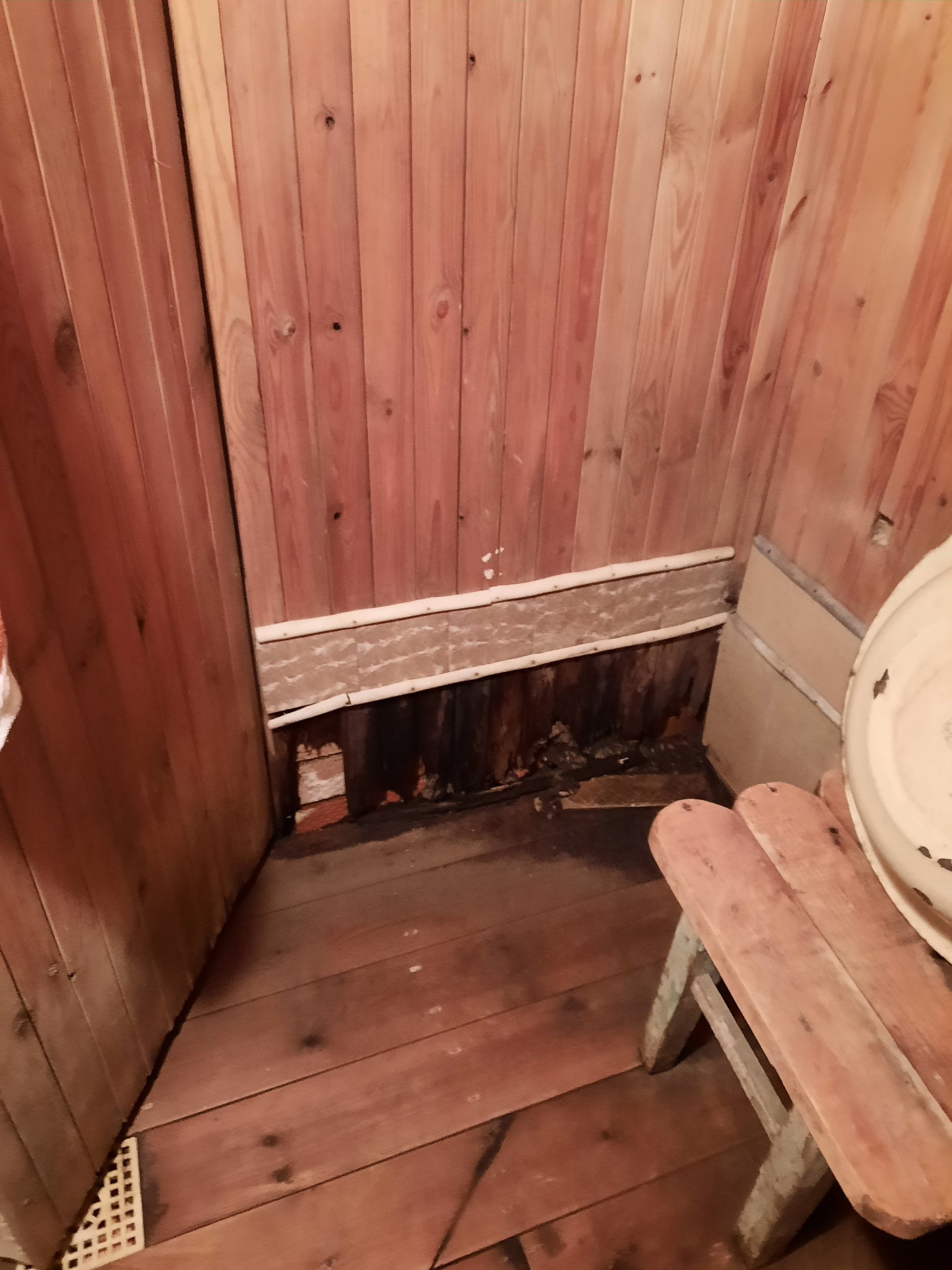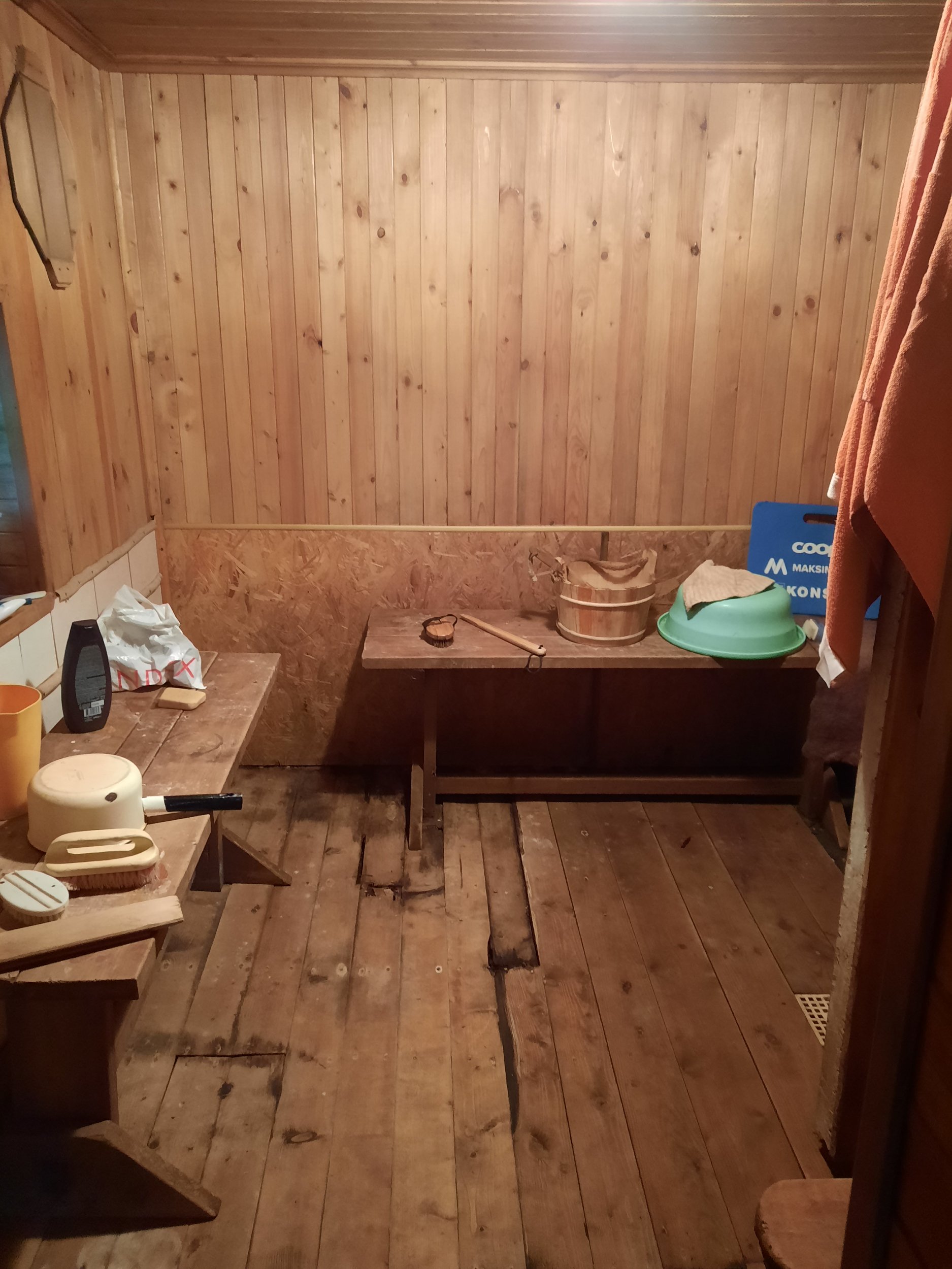Kogu siu (seinad, laed, põrandad) välja lõhkumine, uue põranda valu, plaatimine, uus puitvooder ja lava ehitus, pesuruumi osaline plaatimine, osaliselt puitvooder. Kuna praegu on pesuruumi põrand kõrgemal kui puhkeruumi põrand, siis ilmselt tuleb põrandat sügavamaks kaevata (kuid pole teada, mis seal laudise all on).