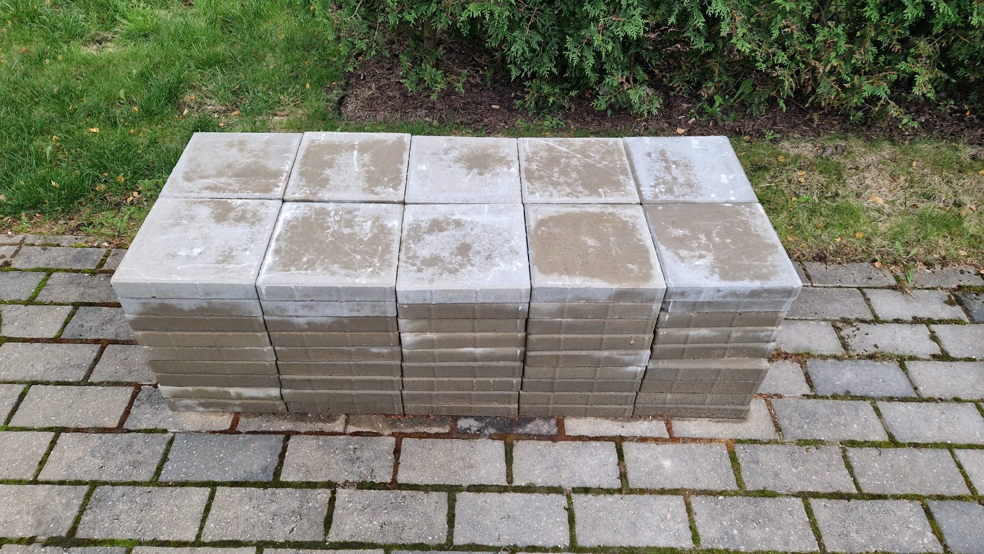 9 m2 ruudukujulisele alale tuleb paigaldada betoonist 300*300*50mm tänavakivid. Ala kahte äärde, mis ei ole vastu terrassi, tuleb paigaldada tänavakivide äärde betoonist 1000*200*80 mm äärekivid. Osad tänavakivid tuleb lõigata sobivasse suurusesse.