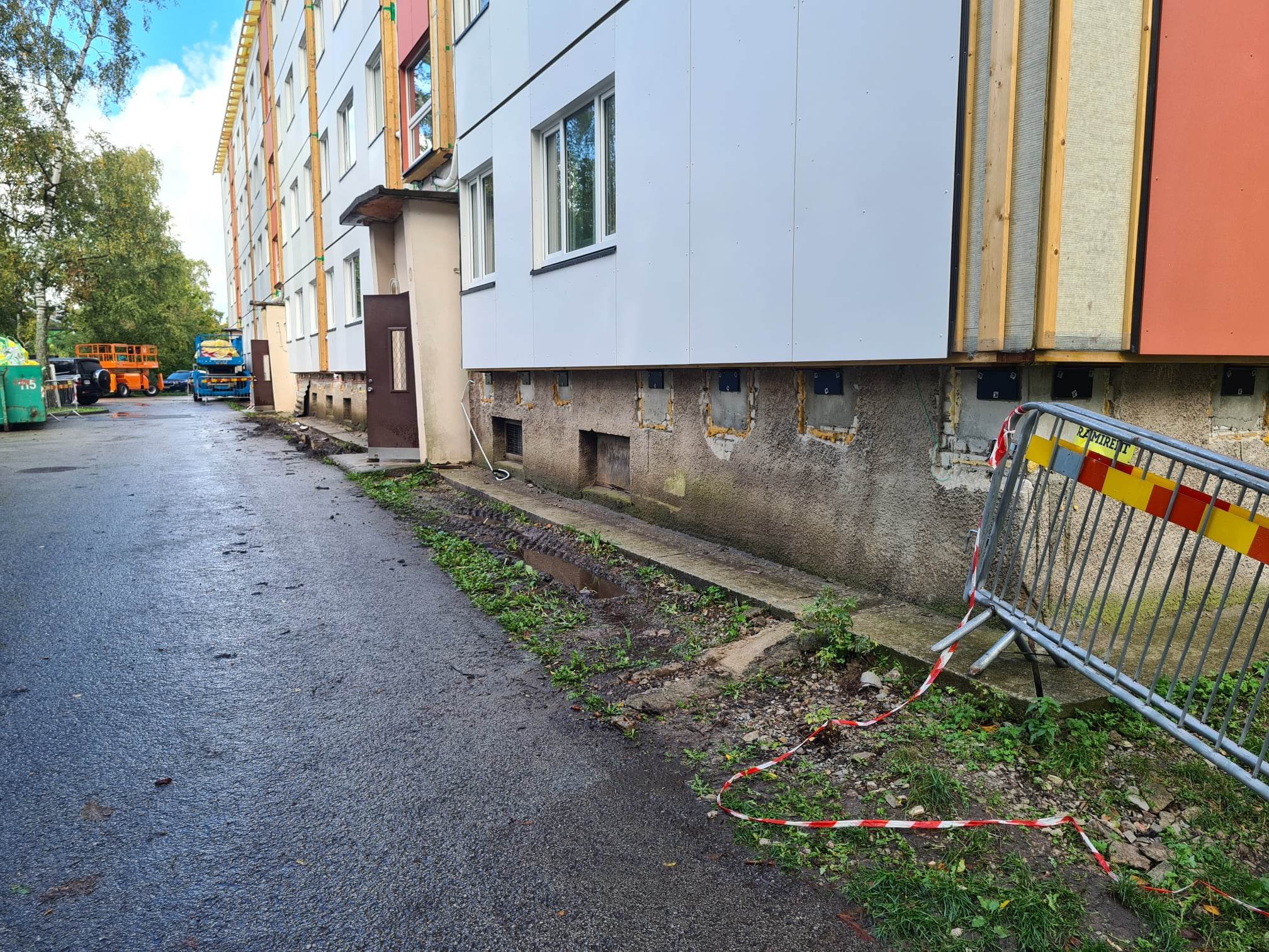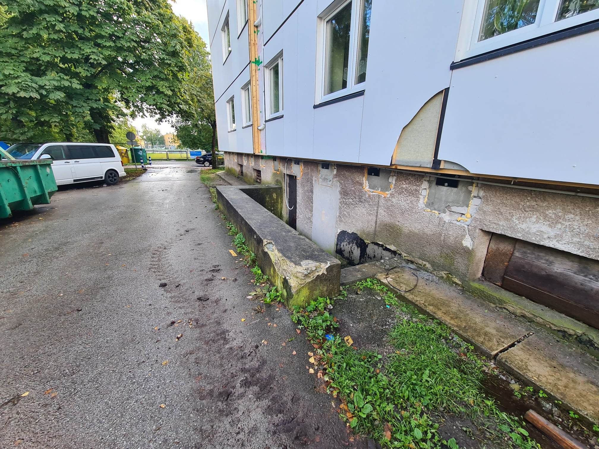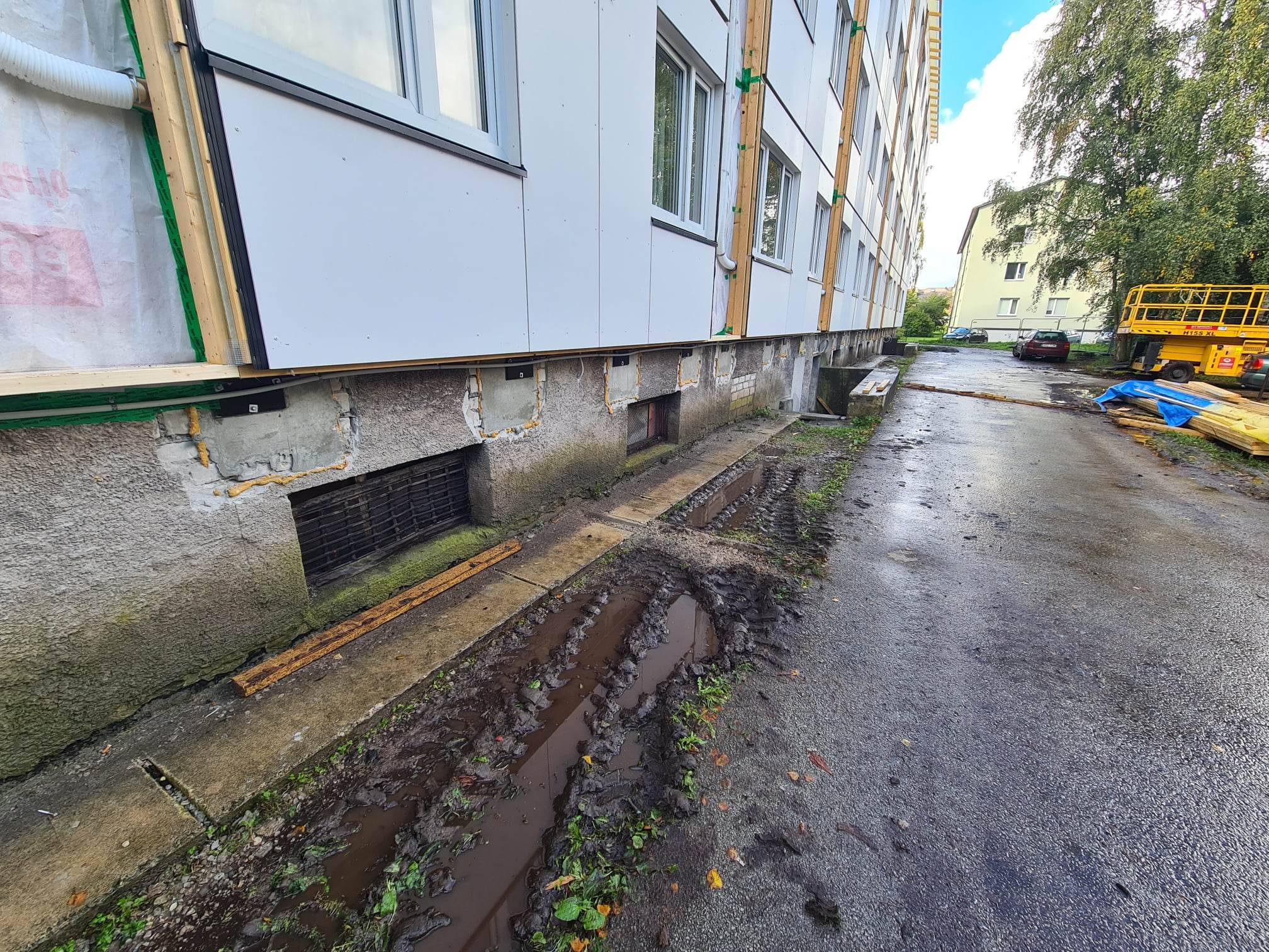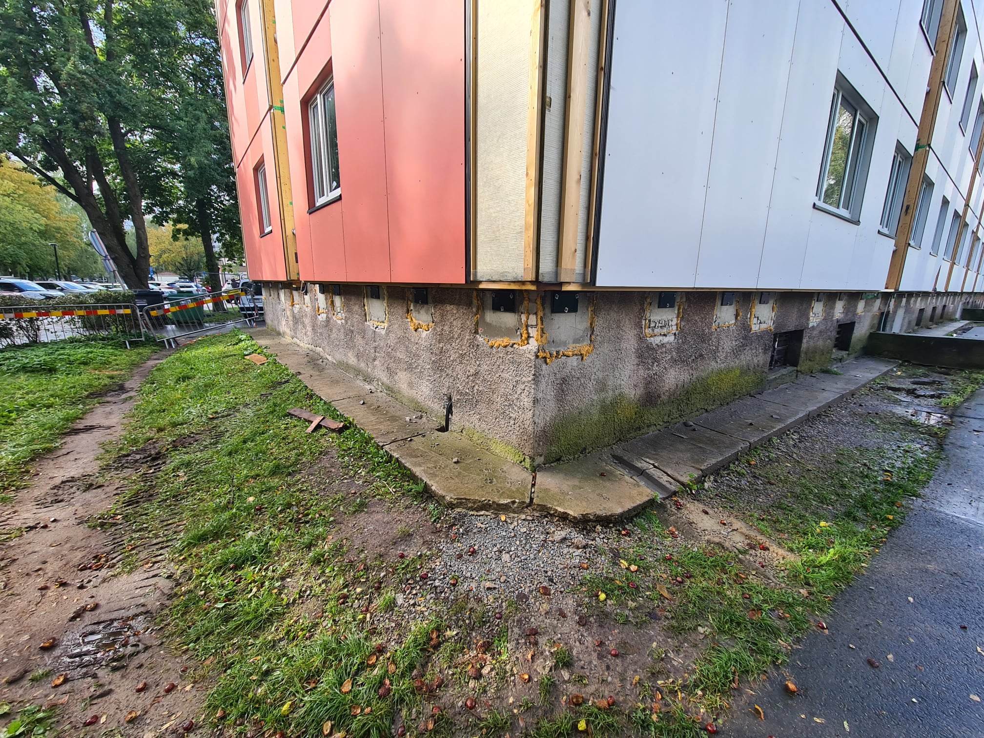 Kortermaja perimeetril vaja vana betoon pandus lahti kaevata ja utiliseerida, sokkel soojustada epsiga, roovi peale paigaldada kivipuruplaat.