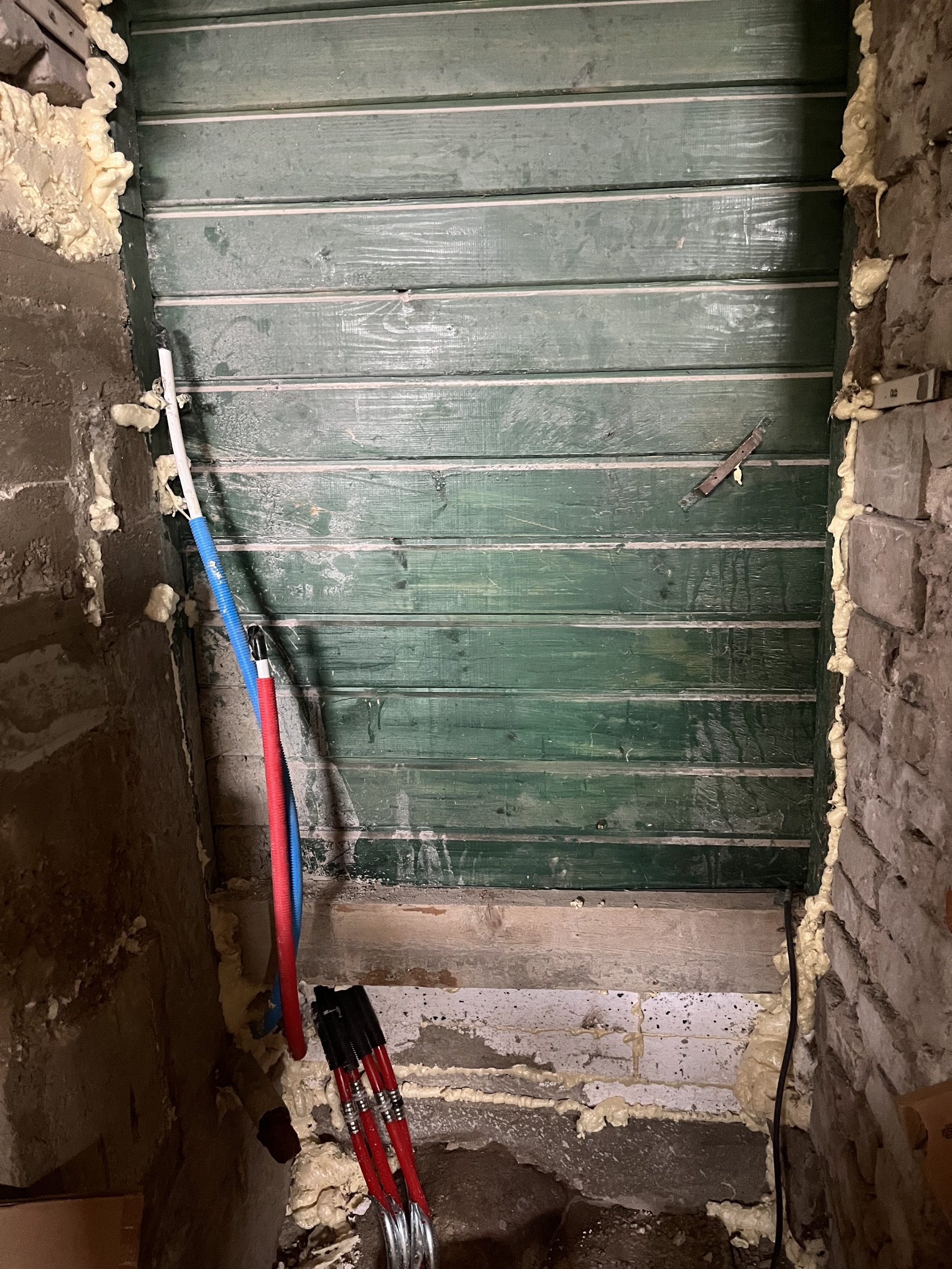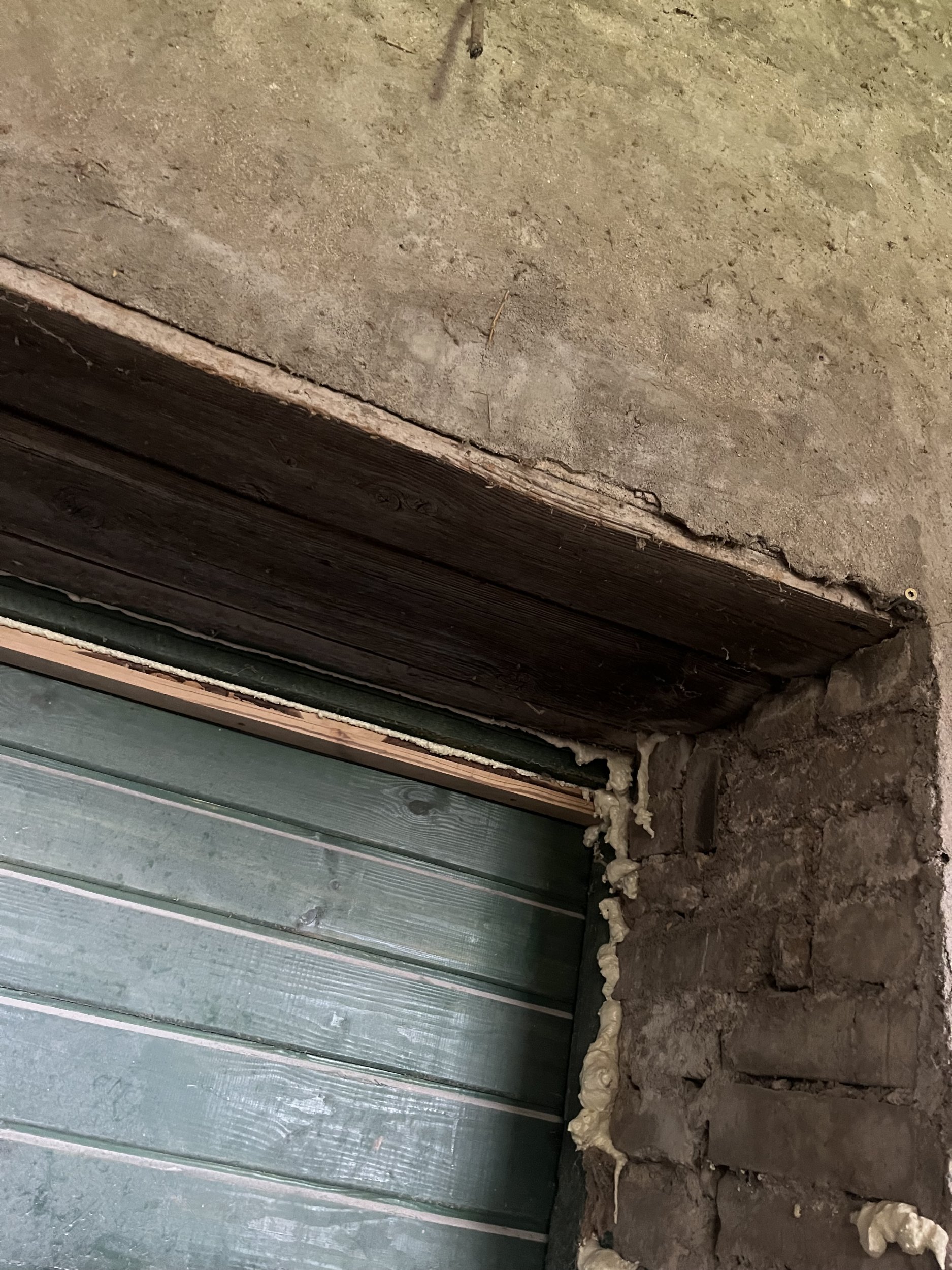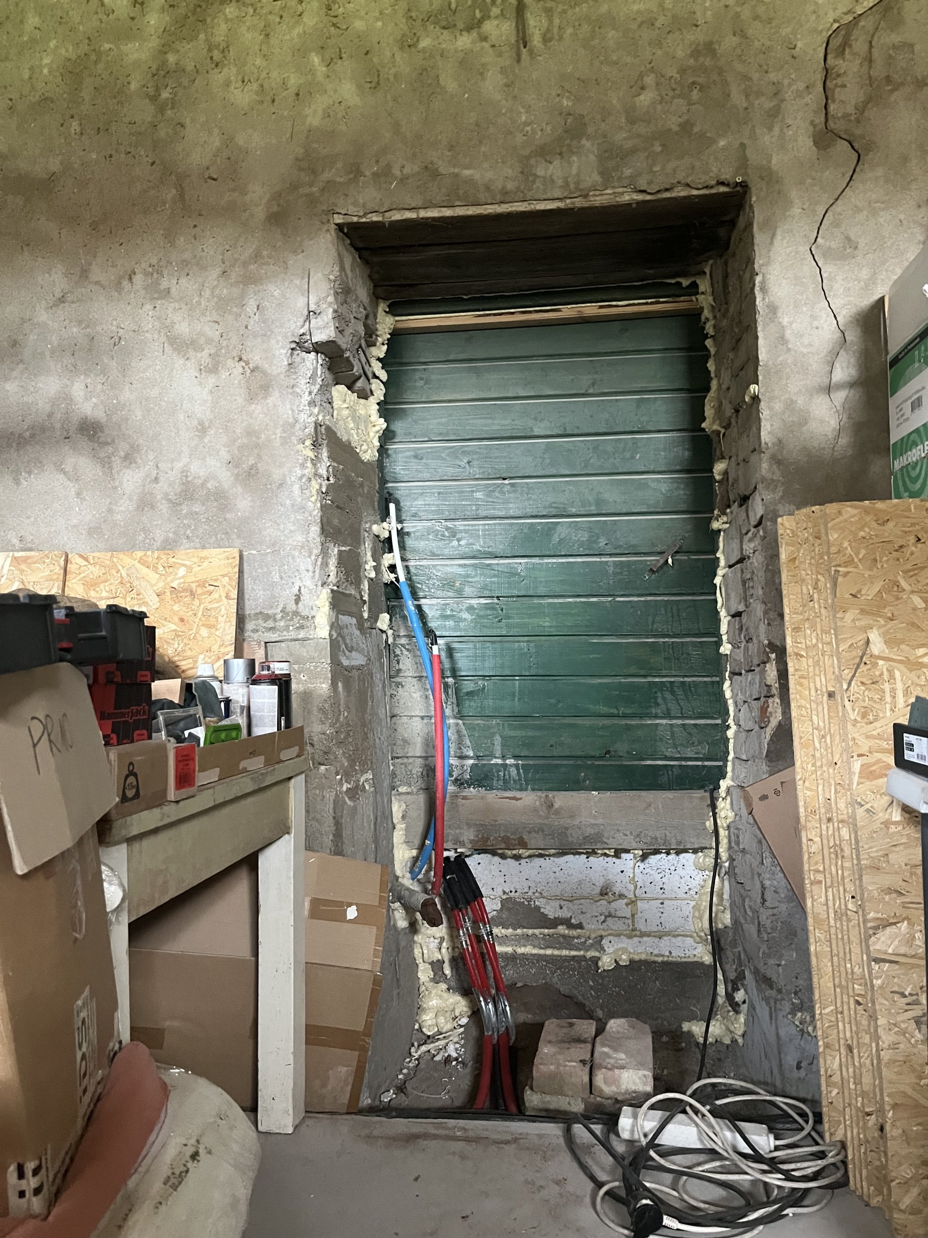 Olemasolev ukse ava kõrgusega 1.70 on vaja lõigata 2.10 kõrguseks, paigaldada vajalikud sillused ja toestused. Seina paksus 50cm, mis koosneb kahest paralleelsest seinast (tellissein ja maakivisein), seinade vahel õhuvahe. Ava laius 1 meeter.