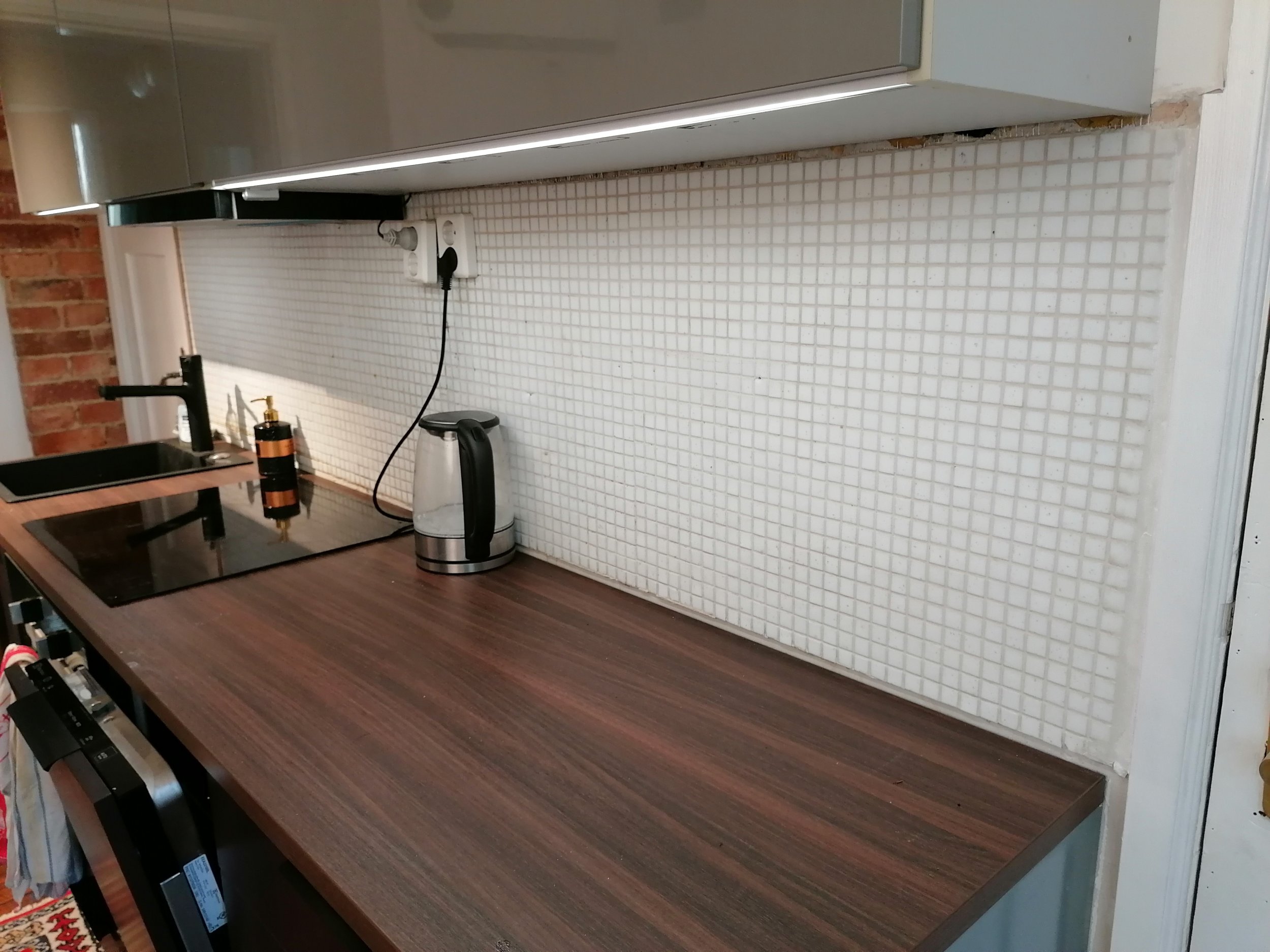 Soovin vahetada oma köögis seinaplaadid. Plaaditud pind on 246 cm x 59 cm. Uue plaadi suurus on 4,3 x 24,3 cm. Uued plaadid on olemas, muu endal puudub (plaatimissegu jne). Vanad plaadid on hetkel seinas. Kui võimalik, võib nende peale plaatida. Kui mitte, saan need enne uute panemist lahti katkuda.