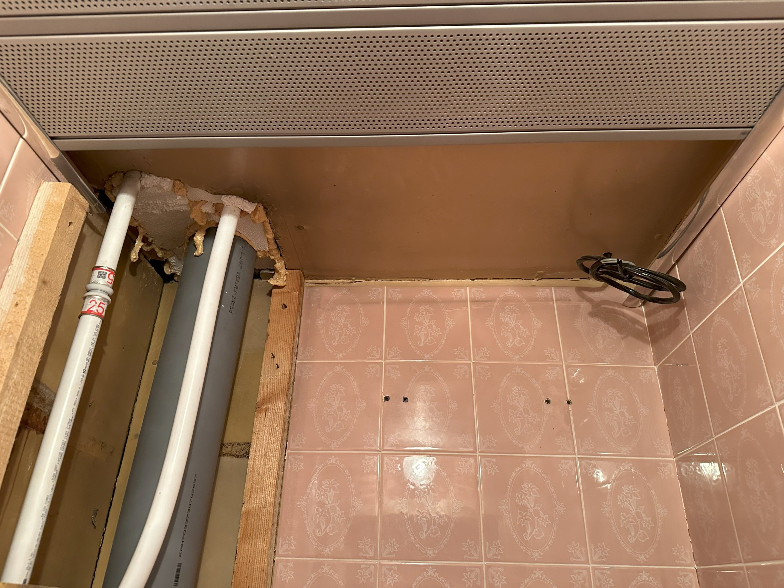 - uue torustiku paigaldus : ühendused duši- ja kraanikausi segistiga, WC potiga ning köögiga (torud seina sees). Püstaku vertikaalsed torud on juba vahetatud.