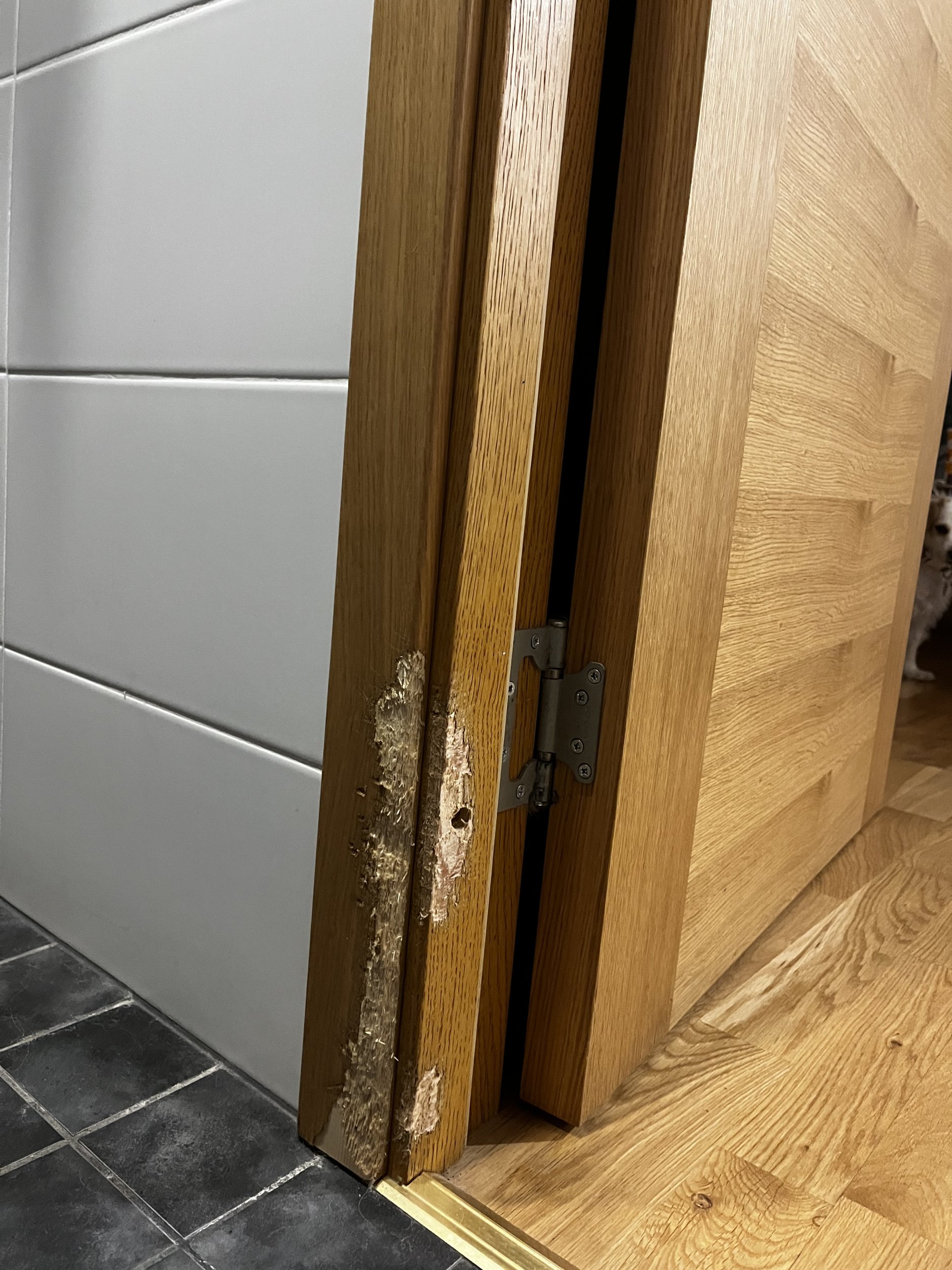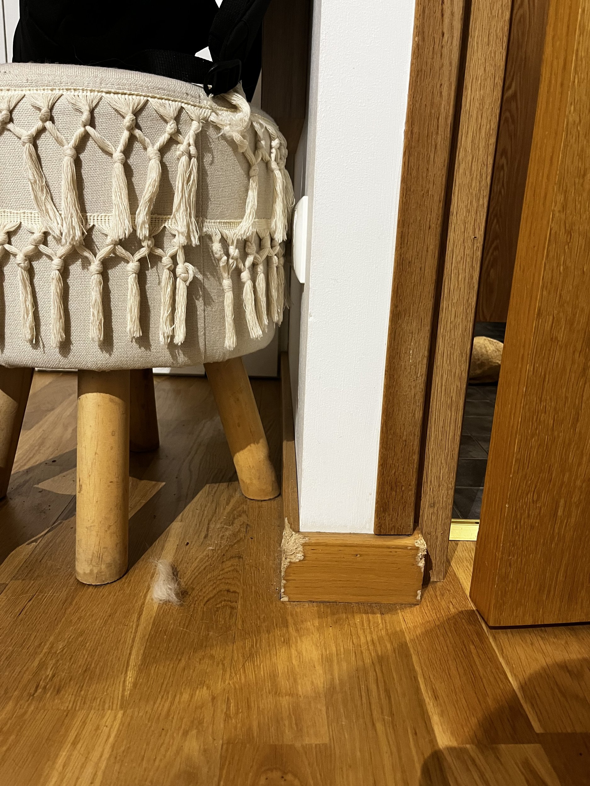 Seems like u need a doorframe replacement also. I can offer you doorframe replacement (in case we can find similar), skirtings replacement and the floor job. Materials, unfortunately going to be a separate bill. Wish u a great day, Best regards, Tim |