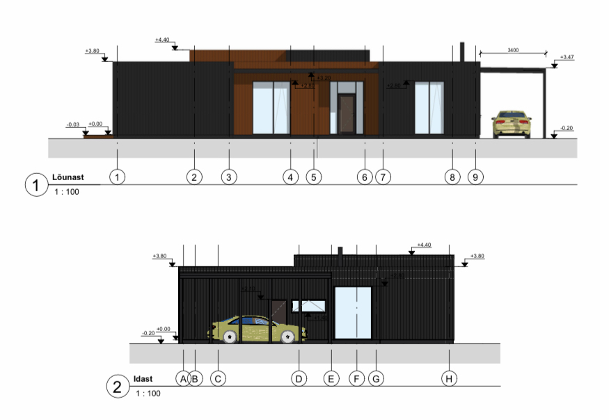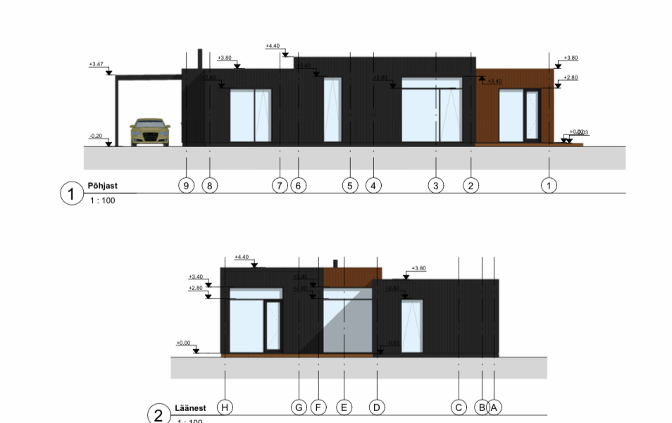 Maja kõrgus 3,8m, üks osa 4,4m.