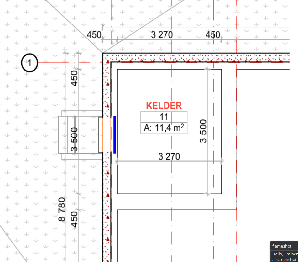 Betoonplaadi läbilõike joonis lisatud pildina. Esimes korruse plaani peal keldri ala tähistatud rohelisega. Keldri joonisel sinisega tähistatud kohas betoonplaati toetada pole võimalik.