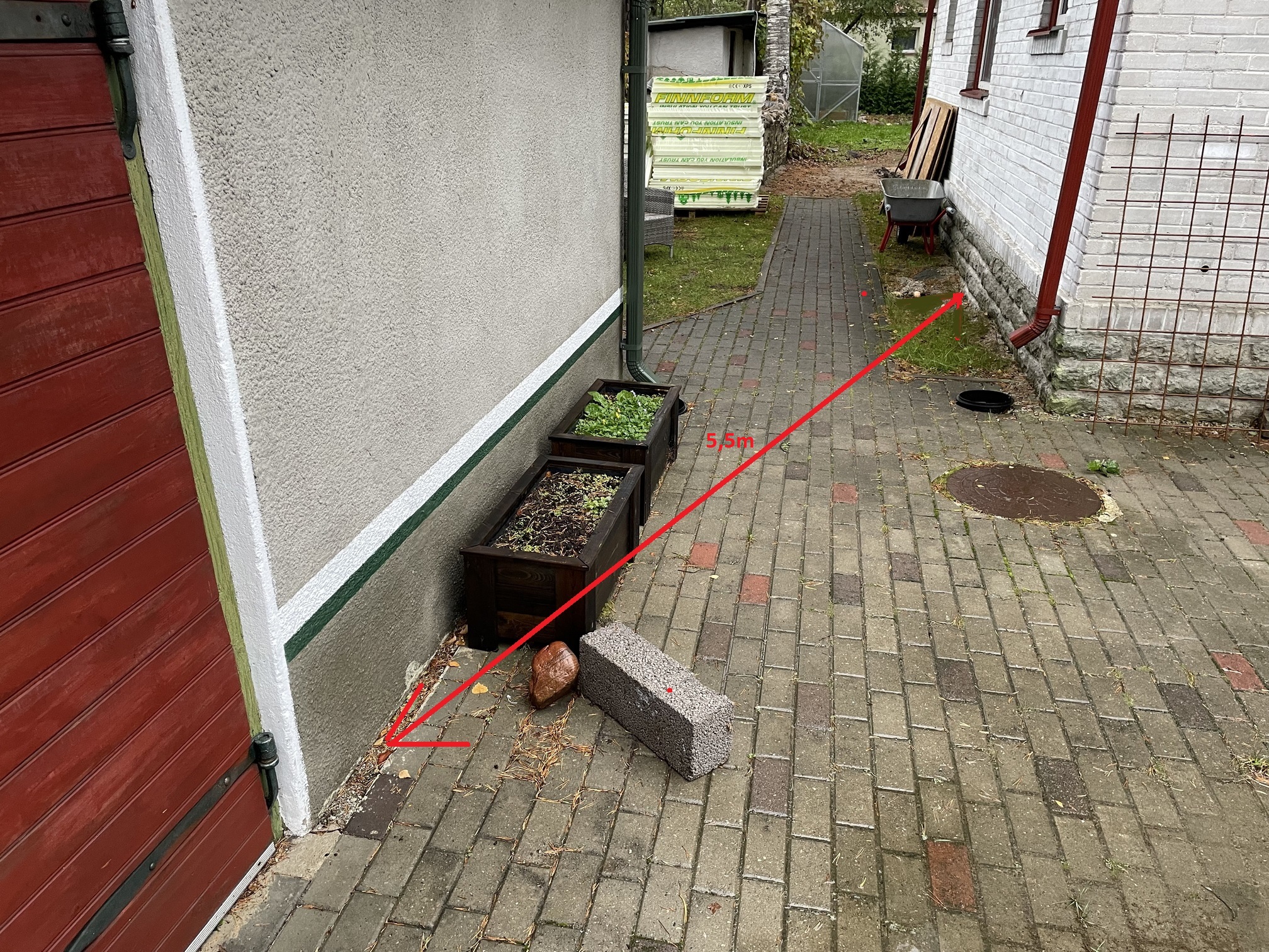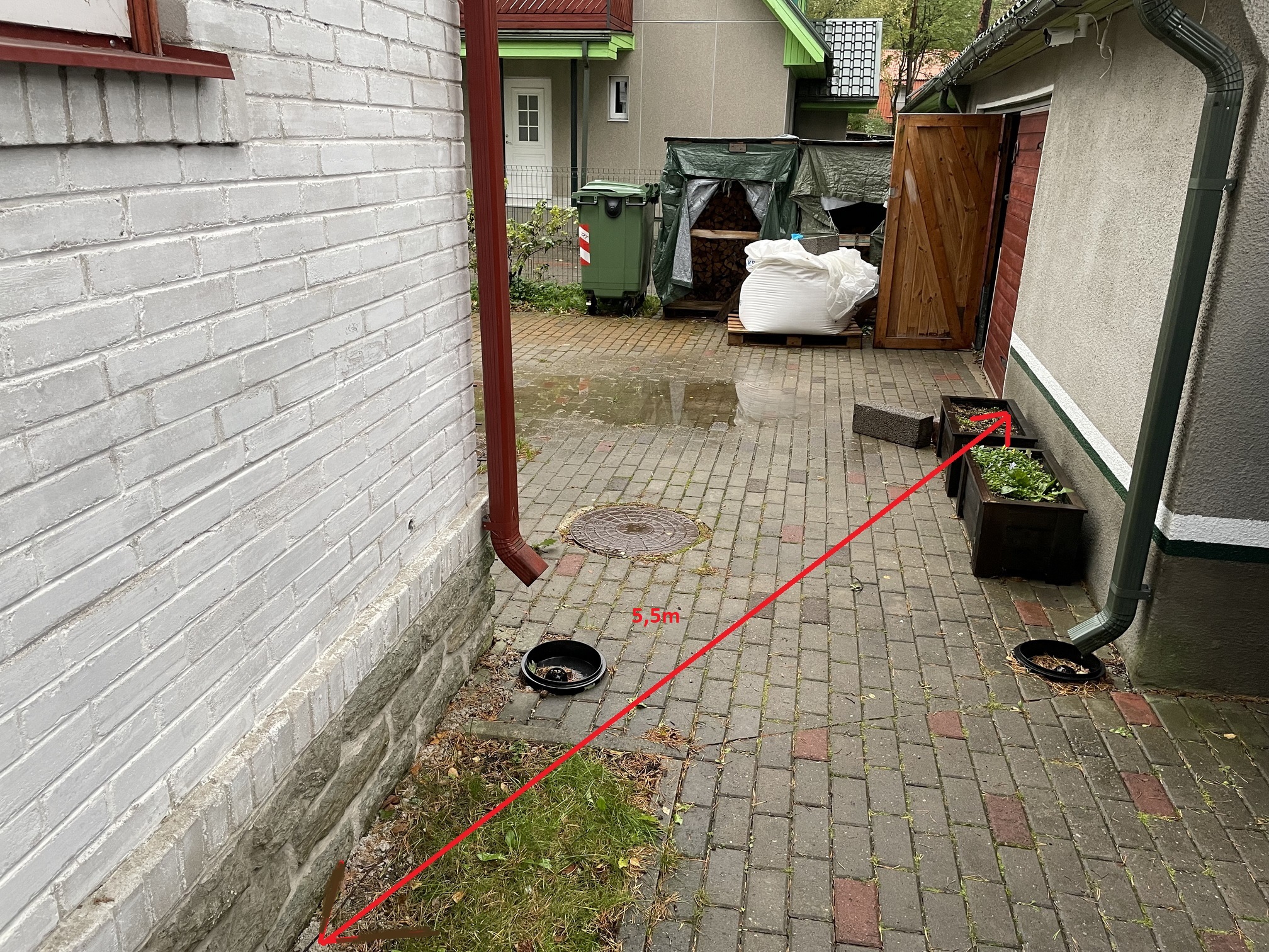 Kõri läheb ~50cm sügavusele ning pikkus majast garaazini on 5,5m.