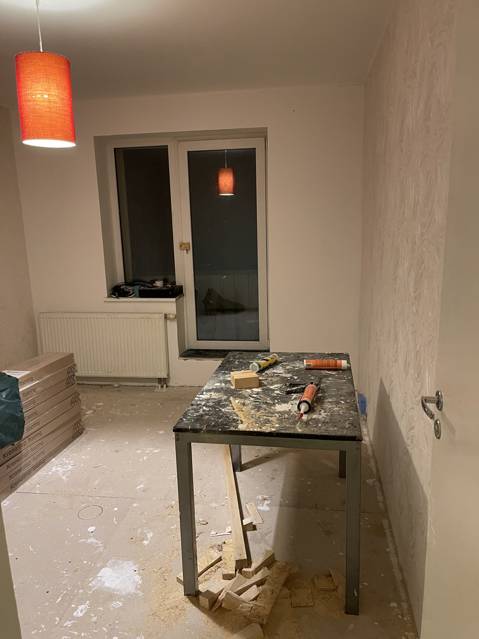 Eeltööd tehtud, vana parkett ära võetud ja minema viidud.