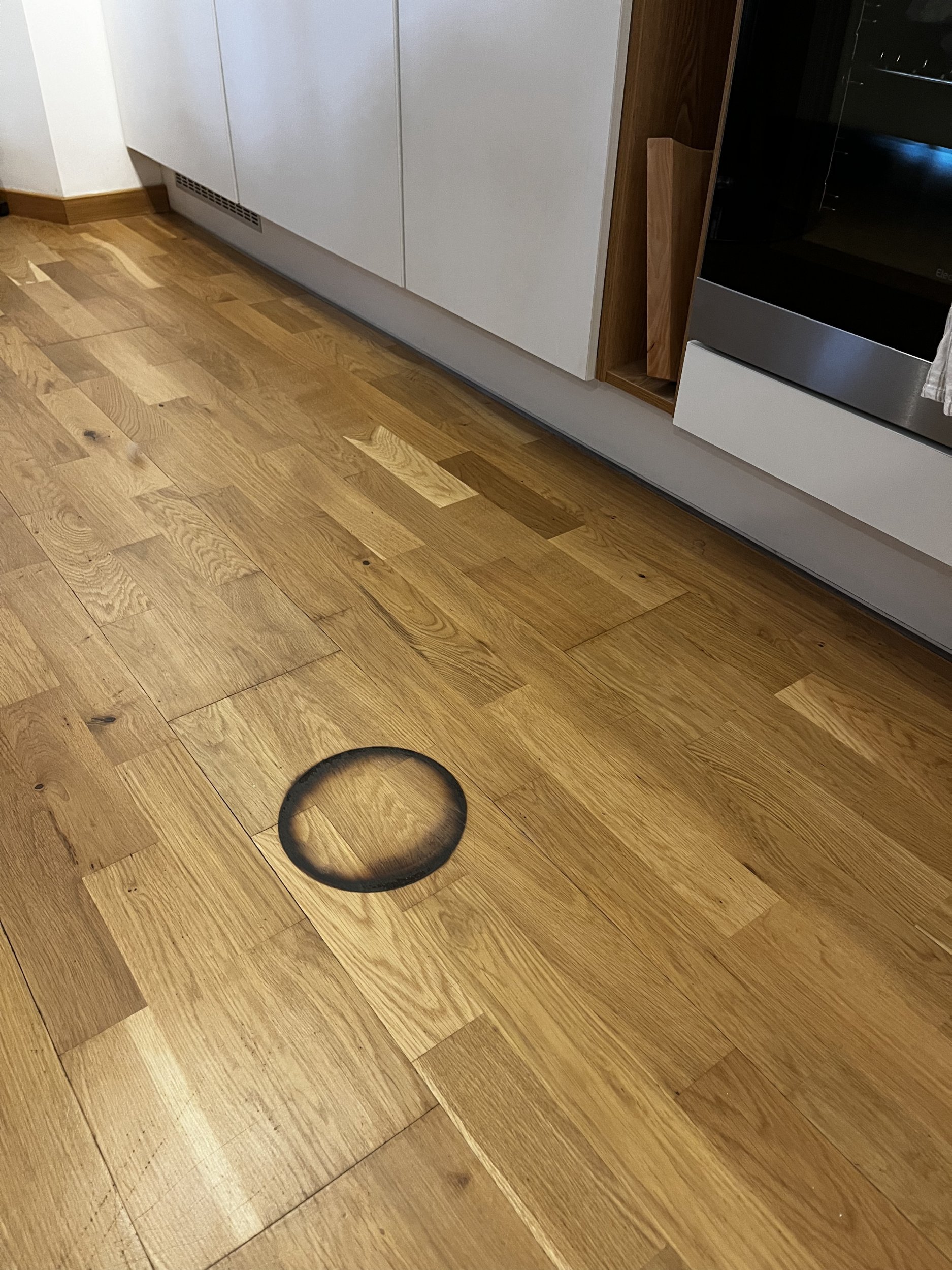 Hi, I hope you can help me; I need to repair only this part of the floor without replacing the entire thing. It is a floating floor; from what I can see, we only affected part of it. If you think you can take on this challenge, happy to coordinate with you.