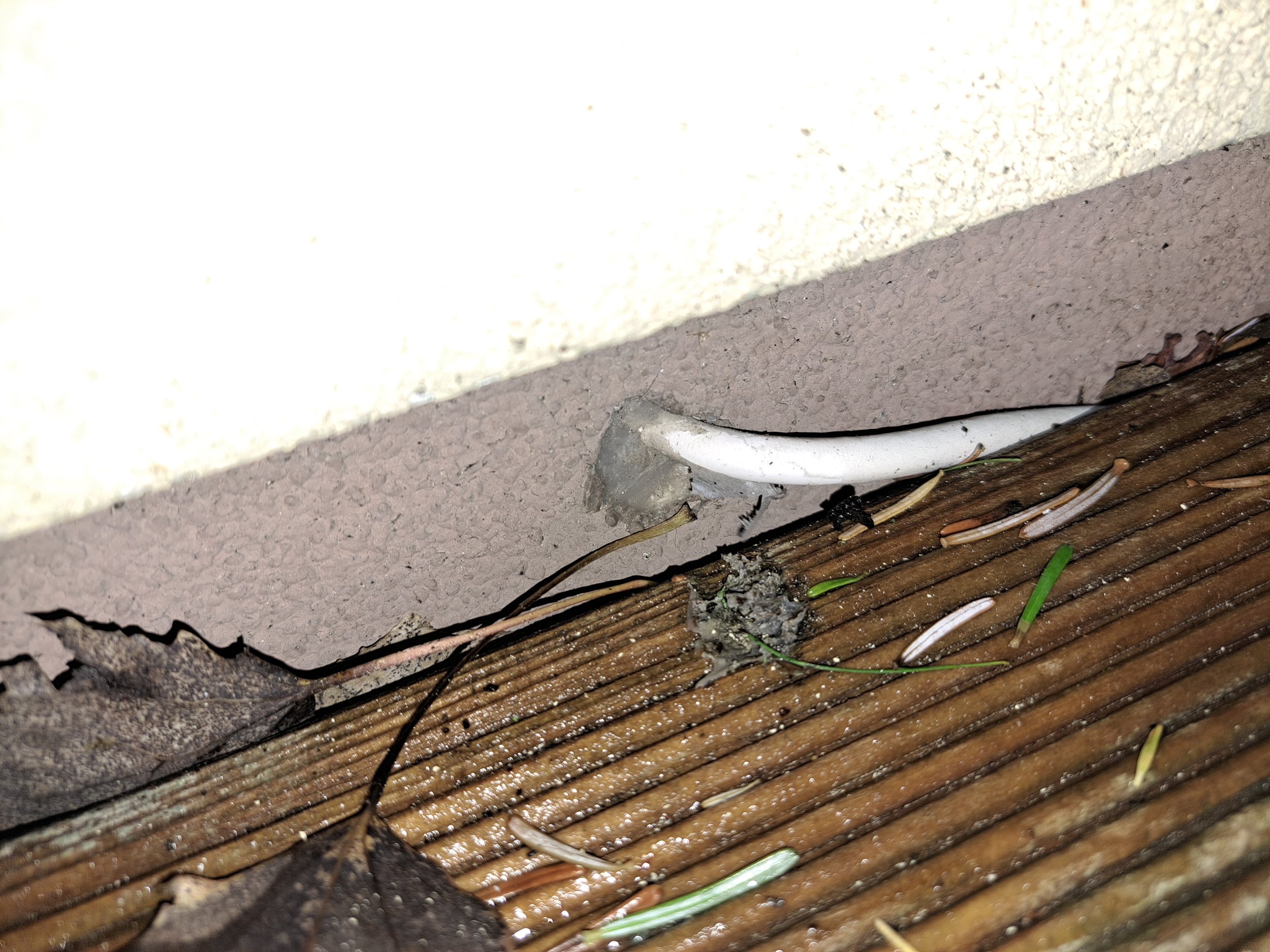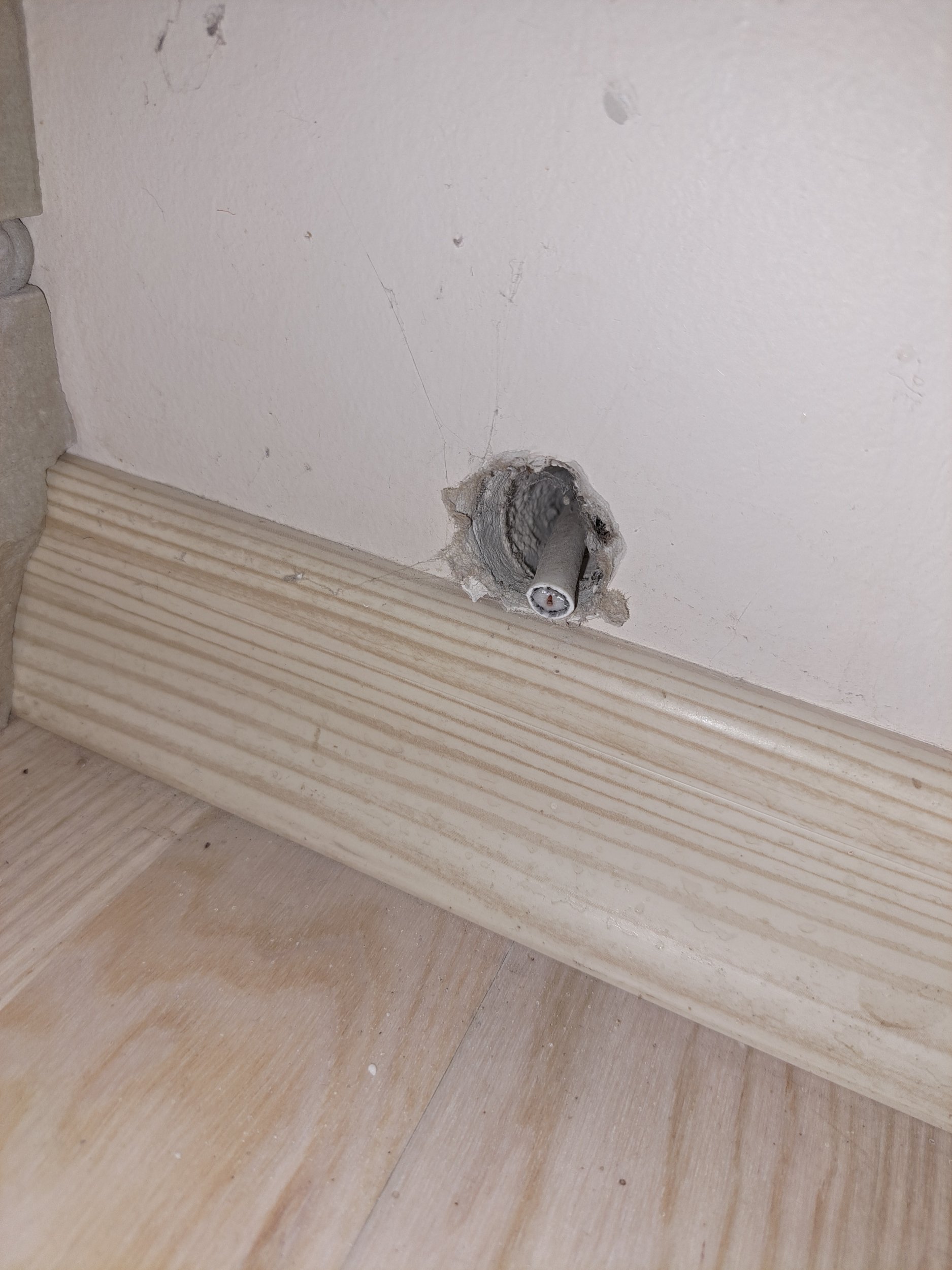 1) Selgitada välja sobivaim majja sissetuleku asukoht. Selleks 2 varianti: kas maja eest tehnoruumi (kas saaks sisse viia nt pildil olevast võrega avast või mingil muul viisil?) või maja tagant otse elutuppa kus hetkel üks auk vana satelliidikaabli jaoks.
