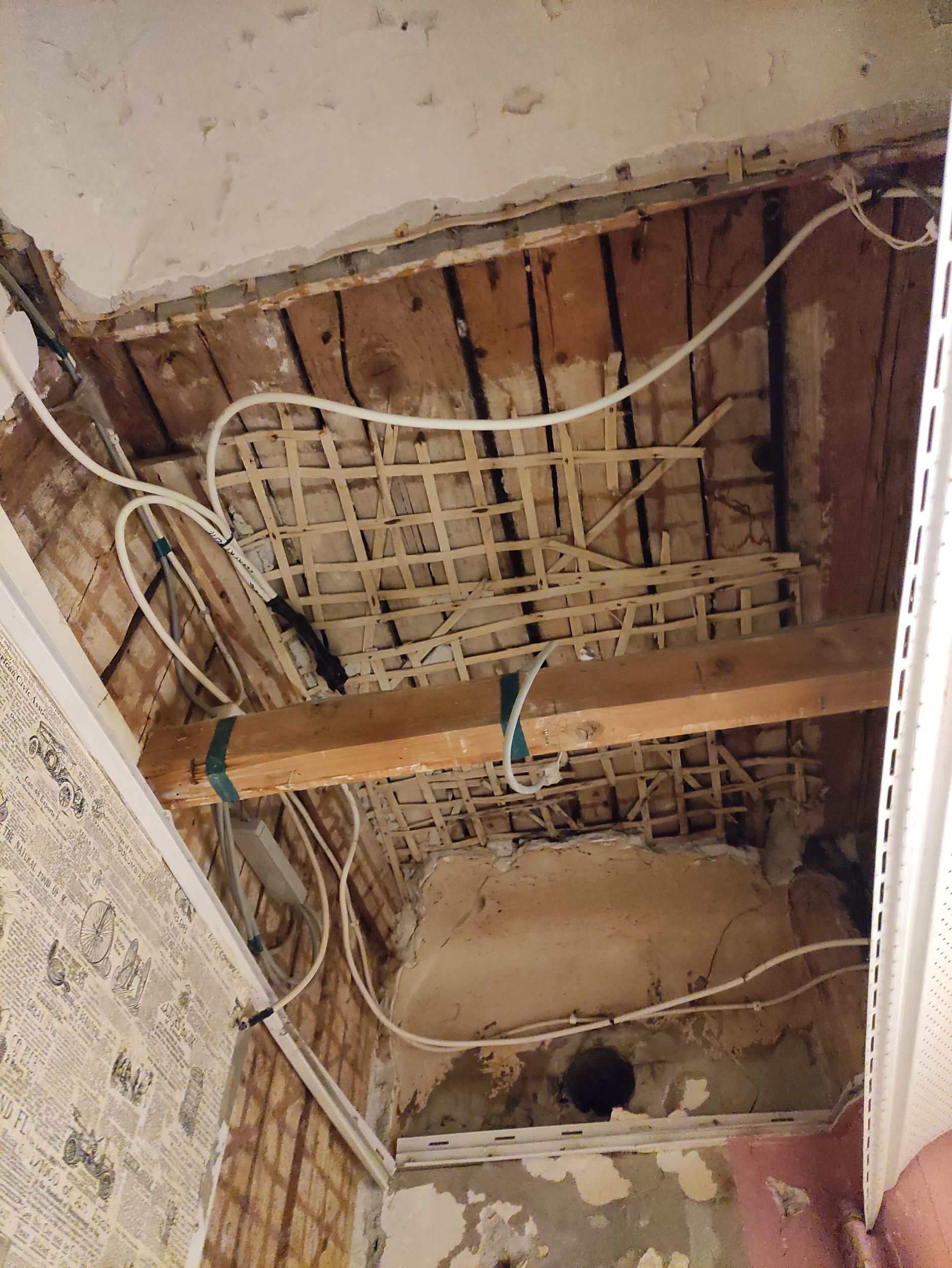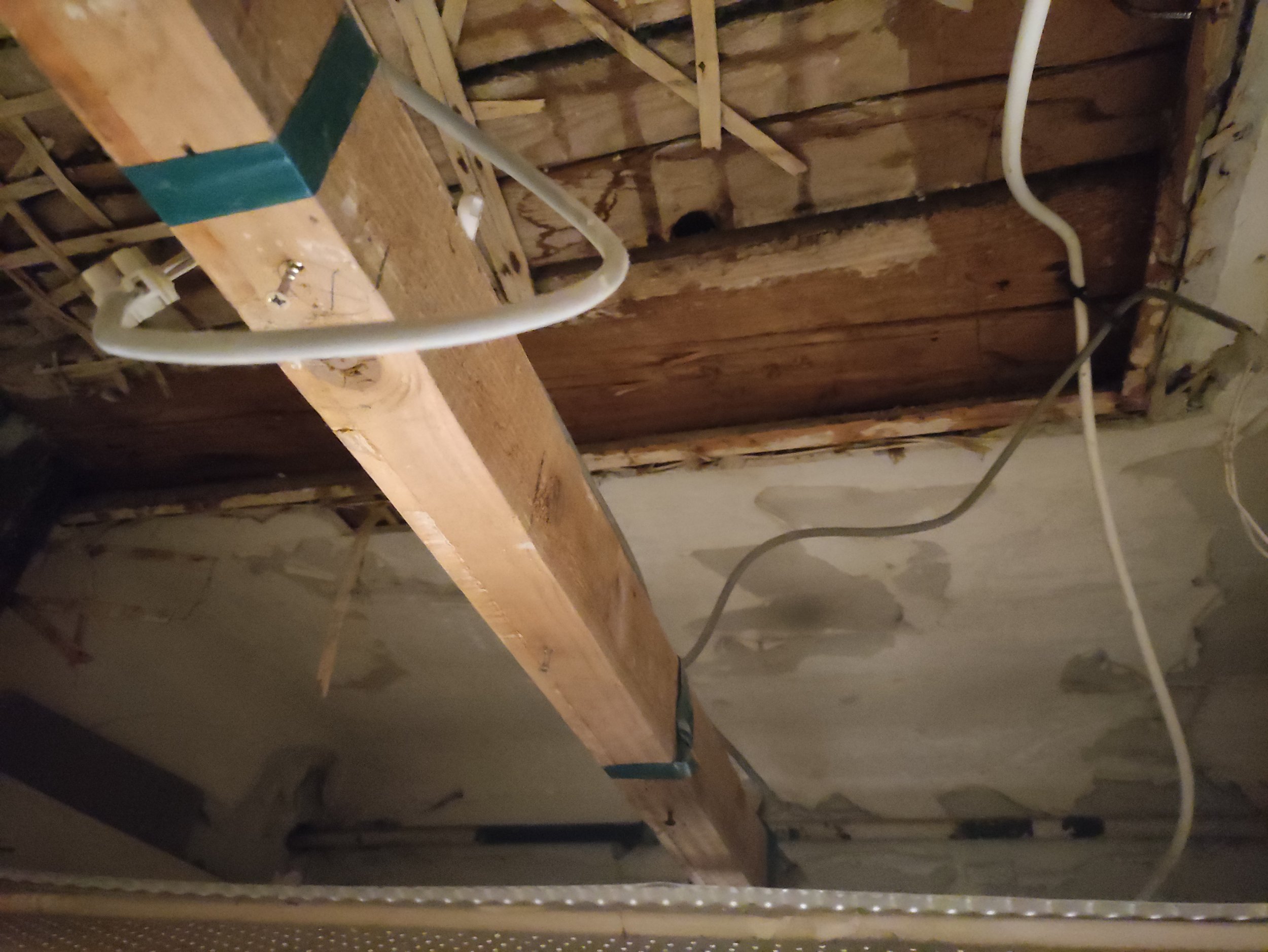 Puisust laelaudise ehitus 4m3 vannitoas vanas puumajas. Valgustite kinnitus lakke.