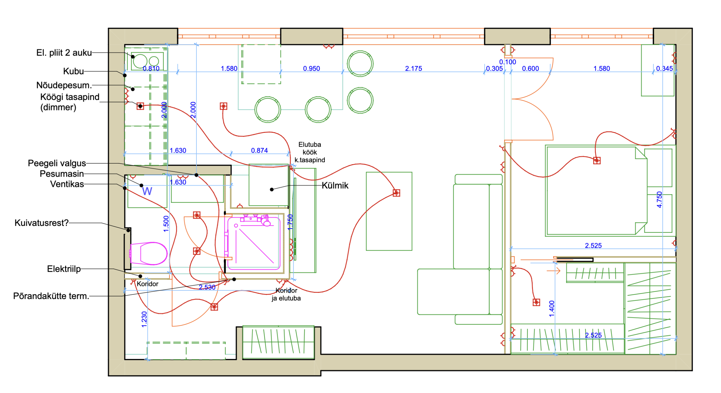 Korteris tehakse täielik renoveerimine, kus uued juhtmed juba veetud, kuid tuleks kokku panna korterisisene jaotuskilp (3-faasi).