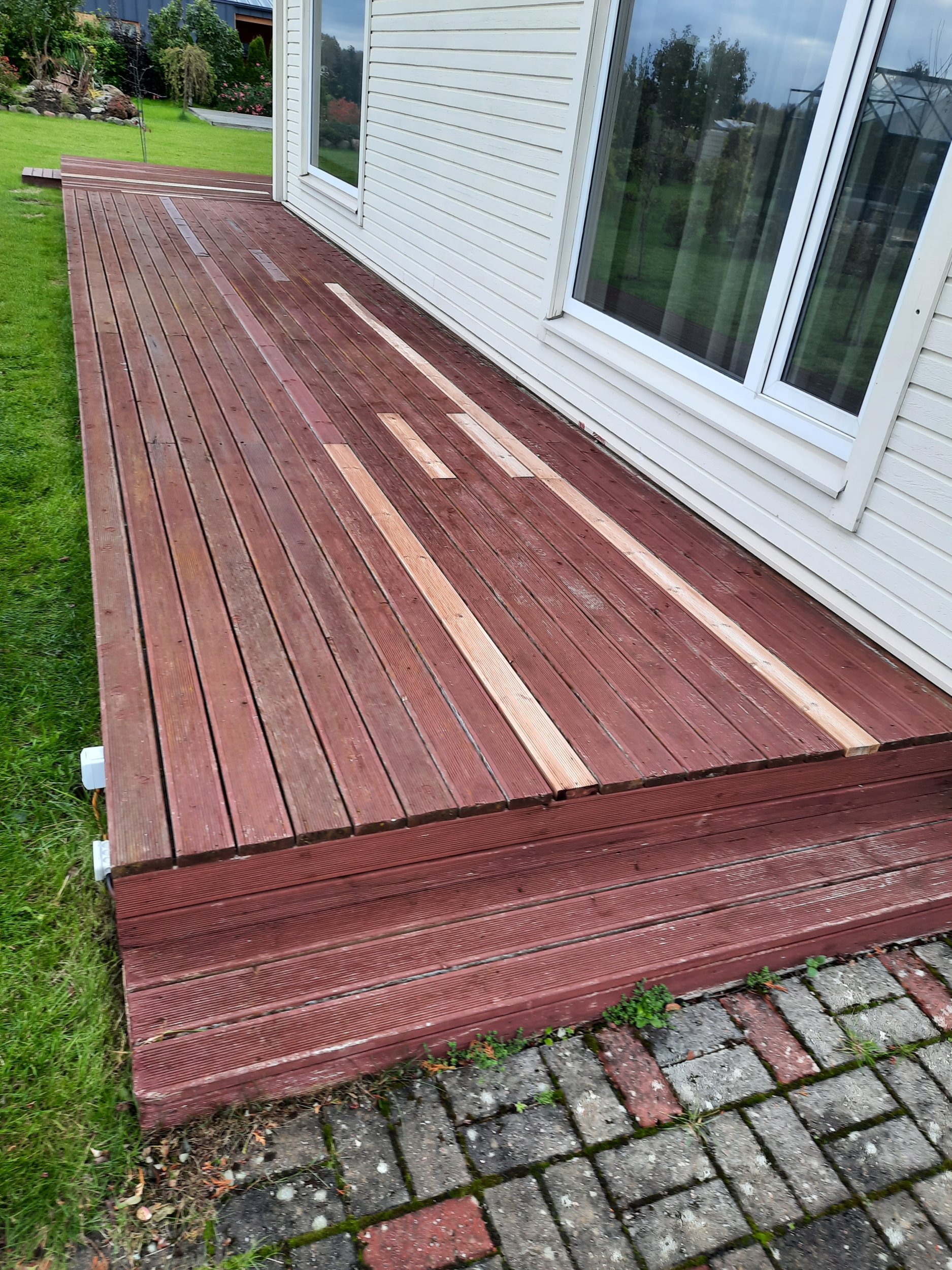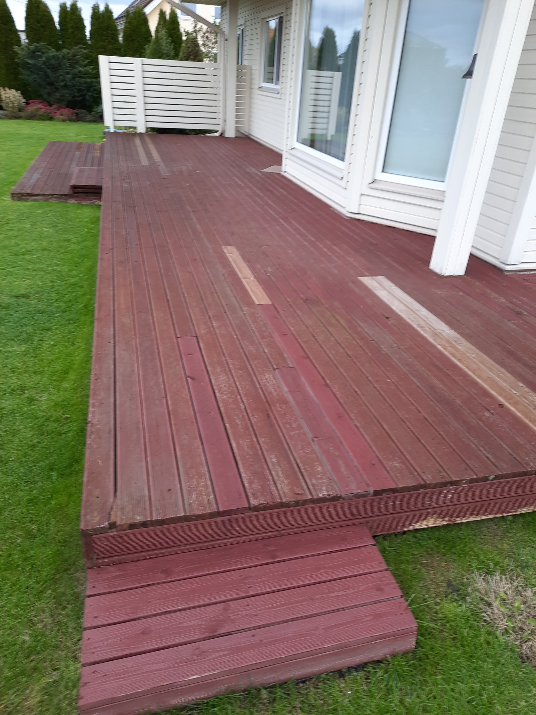 Vanade terassilaudade eemaldamine ja utiliseerimine. Uute laudade paigaldamine. Eeldusel, et kinnitusvahendid on ka olemas. Parimat |