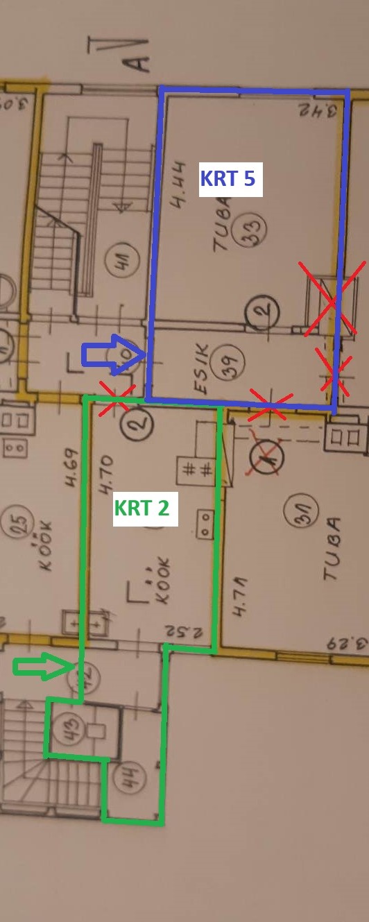 Korter on olnud kunagi kahest osast koosnev, nüüd aga on sellest saanud 2 eraldi paiknevat osa. Millest üks osa tuleks vormistada eraldi korteriks nr 5 Projekt peab sisaldama korteri omandite plaane ja ruumide eksplikatsiooni, mille alusel saab hiljem notariaalselt moodustada korteriomandid.