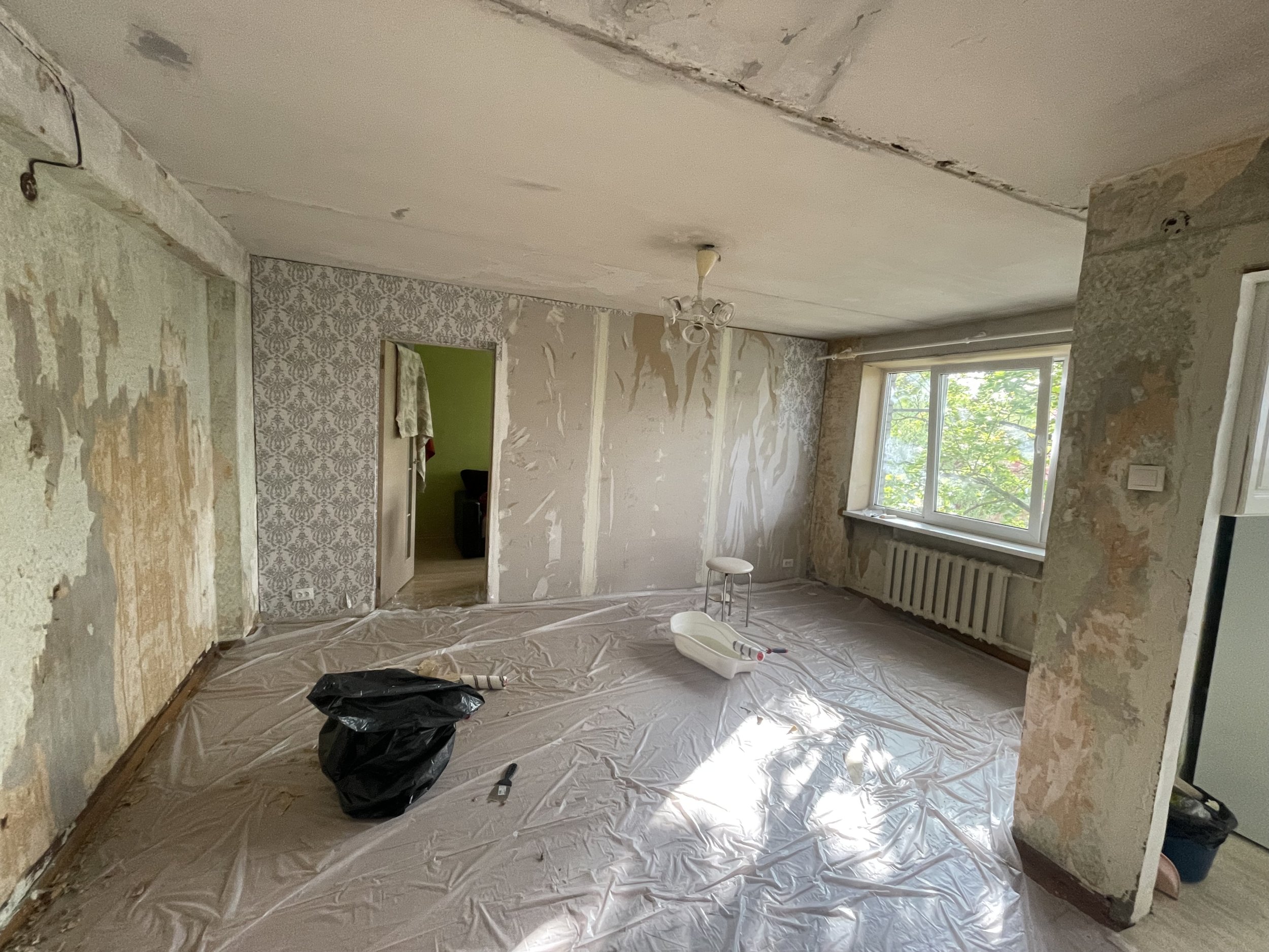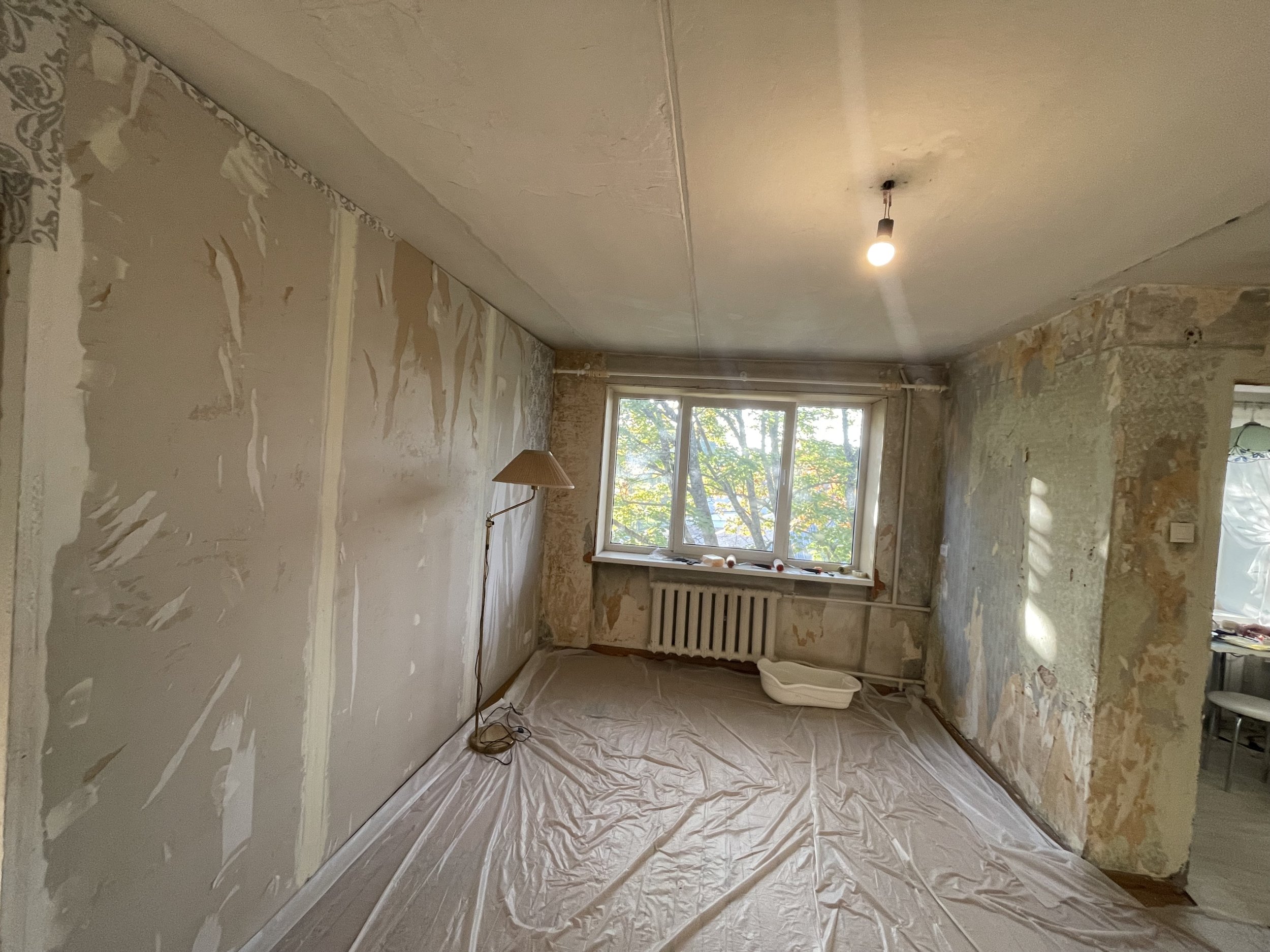 Oleks tarvis krohvida/pahteldada lagi ja seinad. Tapeet seintest eemaldatud. Toa suurus umbes 20m.