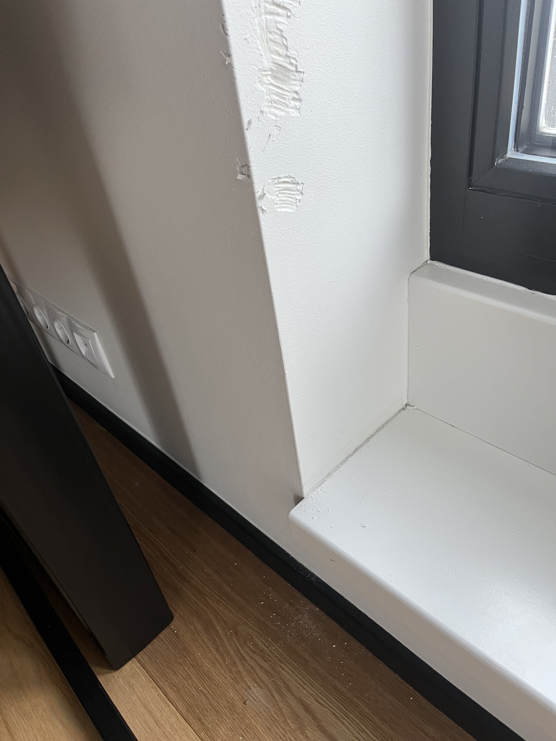 Väike seina nurk vaja pahteldada ja värvida, parketil 10cm x 10cm suures ala vaja lihvida ja õlitada