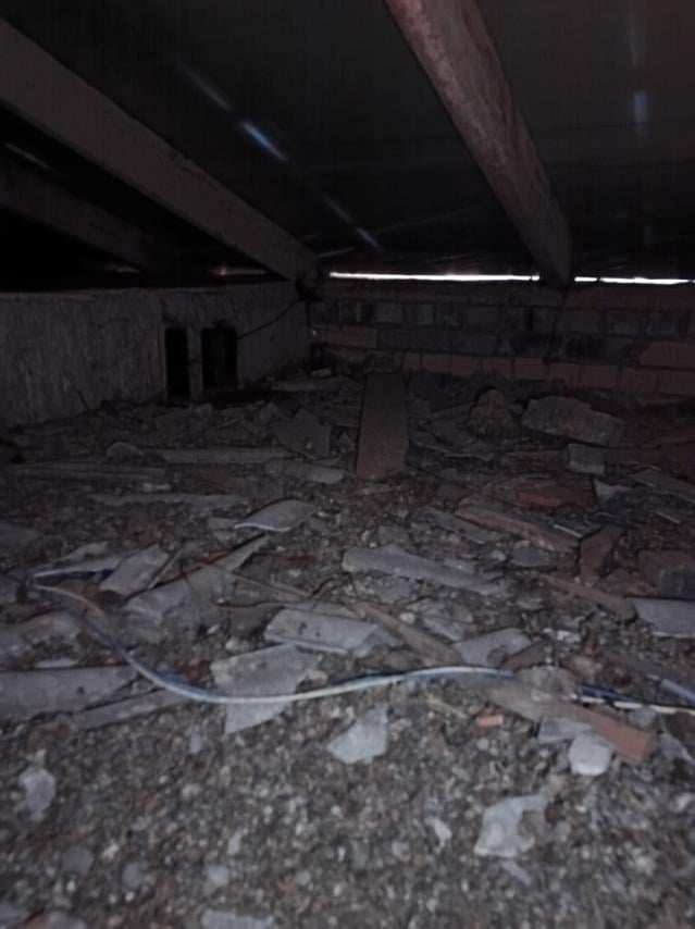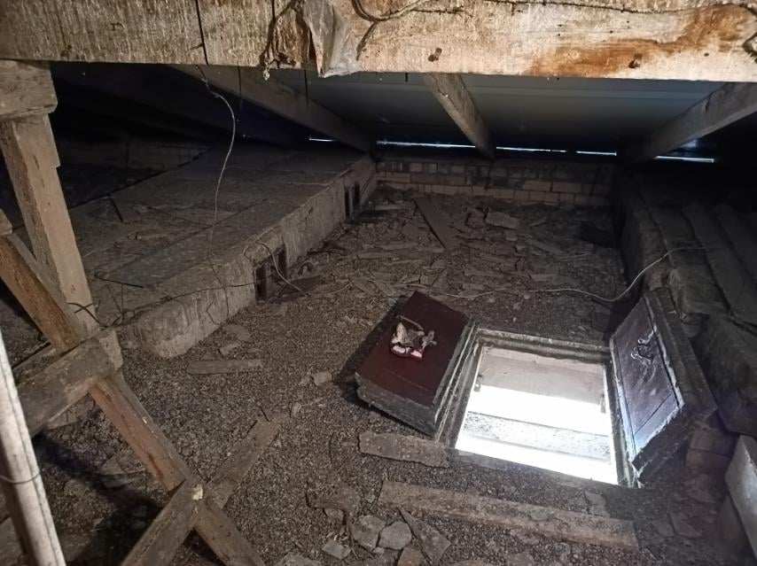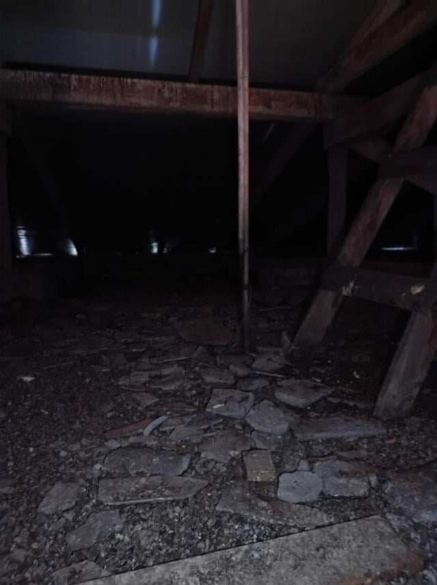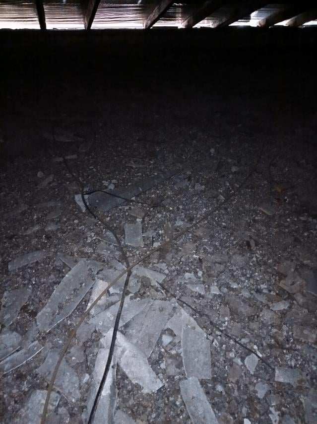 1. pööningkorruse puhastamine prahist (eterniidi tükid, lindude väljaheited) ca 640m2