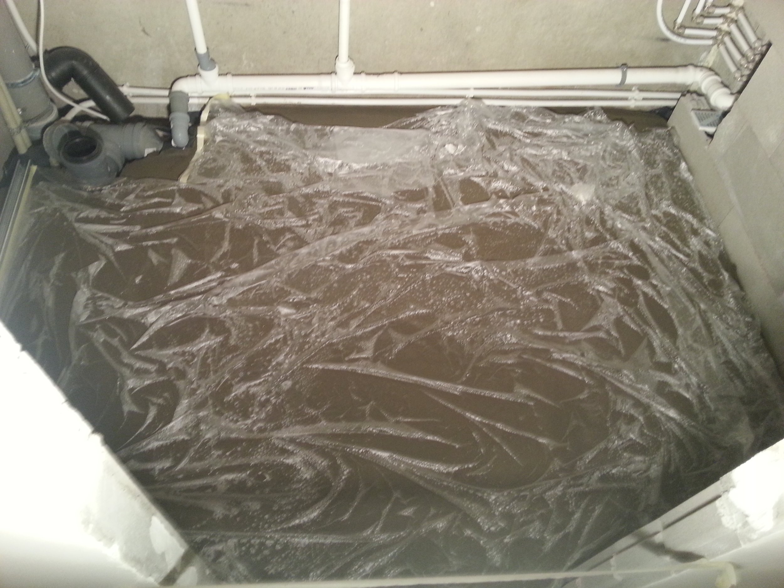 Varasema ehitusvea tõttu vannitoa kanalisatsiooni äravoolu remont.