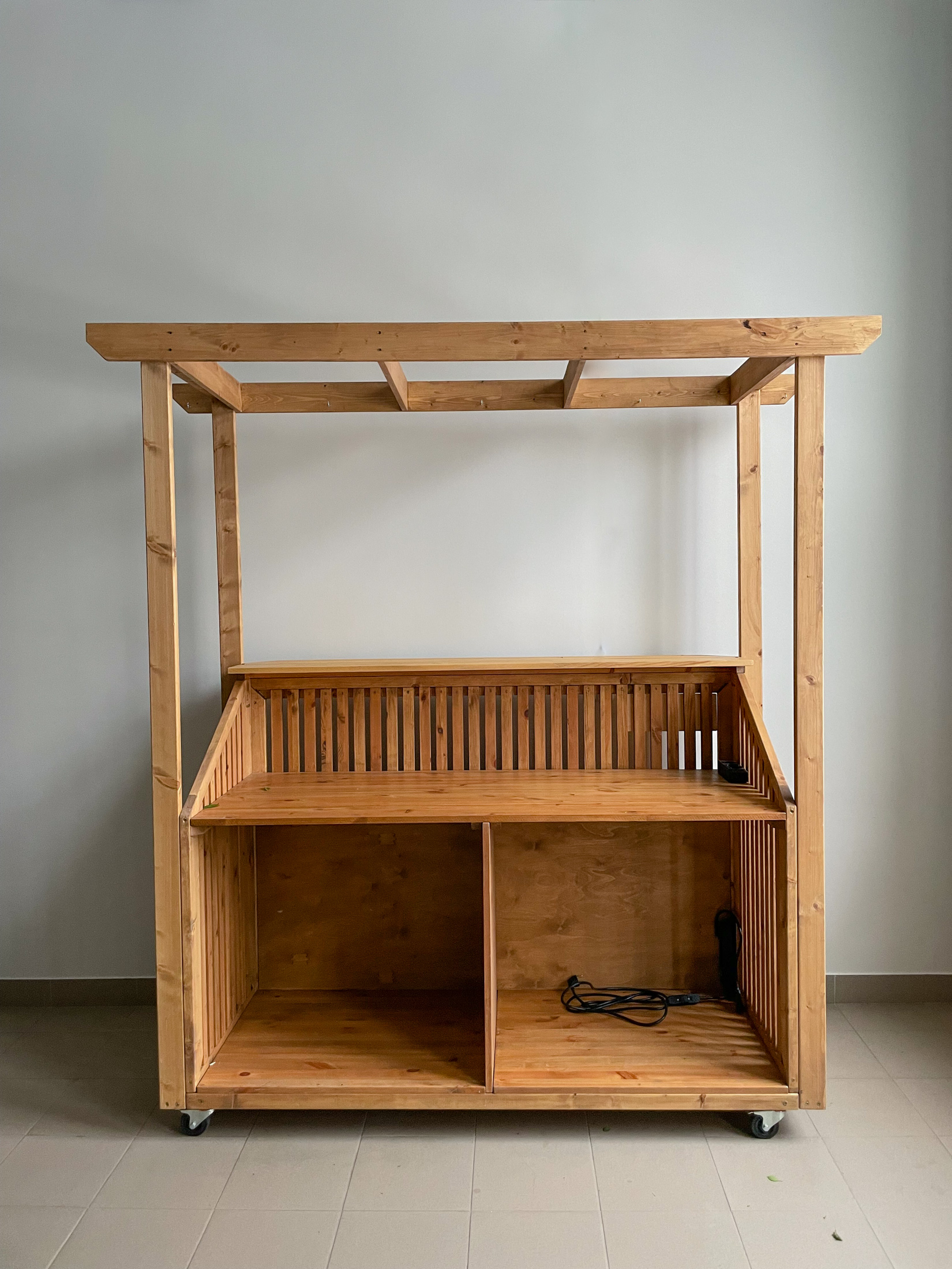 Baari taga olev laud, soovin et parem pool sellest oleks asendatud sellise puidust kausiga kuhu saab asetada alkohooli pudeleid. Äärtest oleks see 10 cm eemal. Kausi sügavus oleks 20cm.