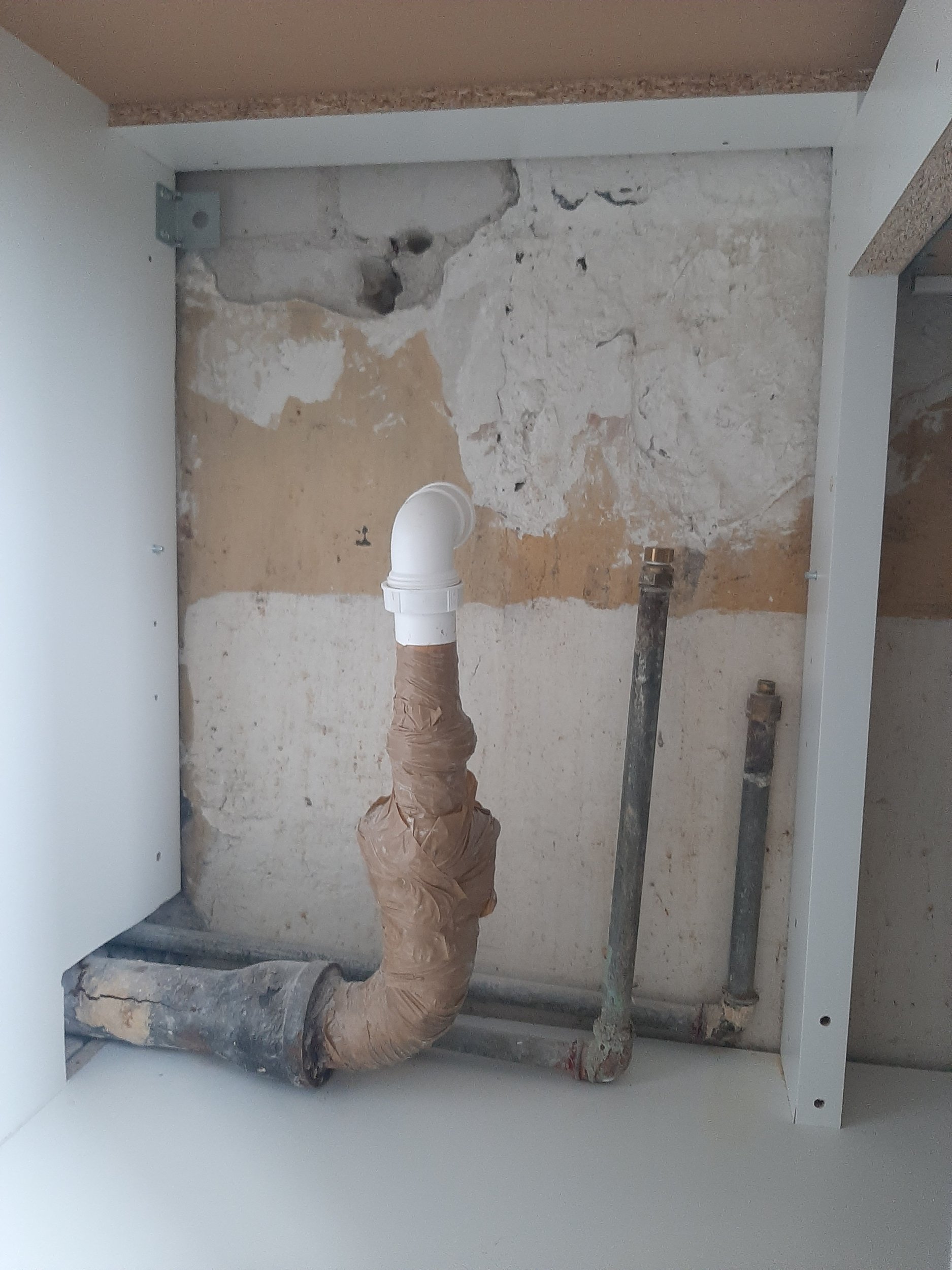 Uus torustik ja ühendused. Vannitoas kraan ja vann ning pesumasina ühendus. Köögis kraan. Klassikaline "lasnamäe lahendus" Soe vesi tuleb gaasiboilerist. Äravool vahetust ei vaja.