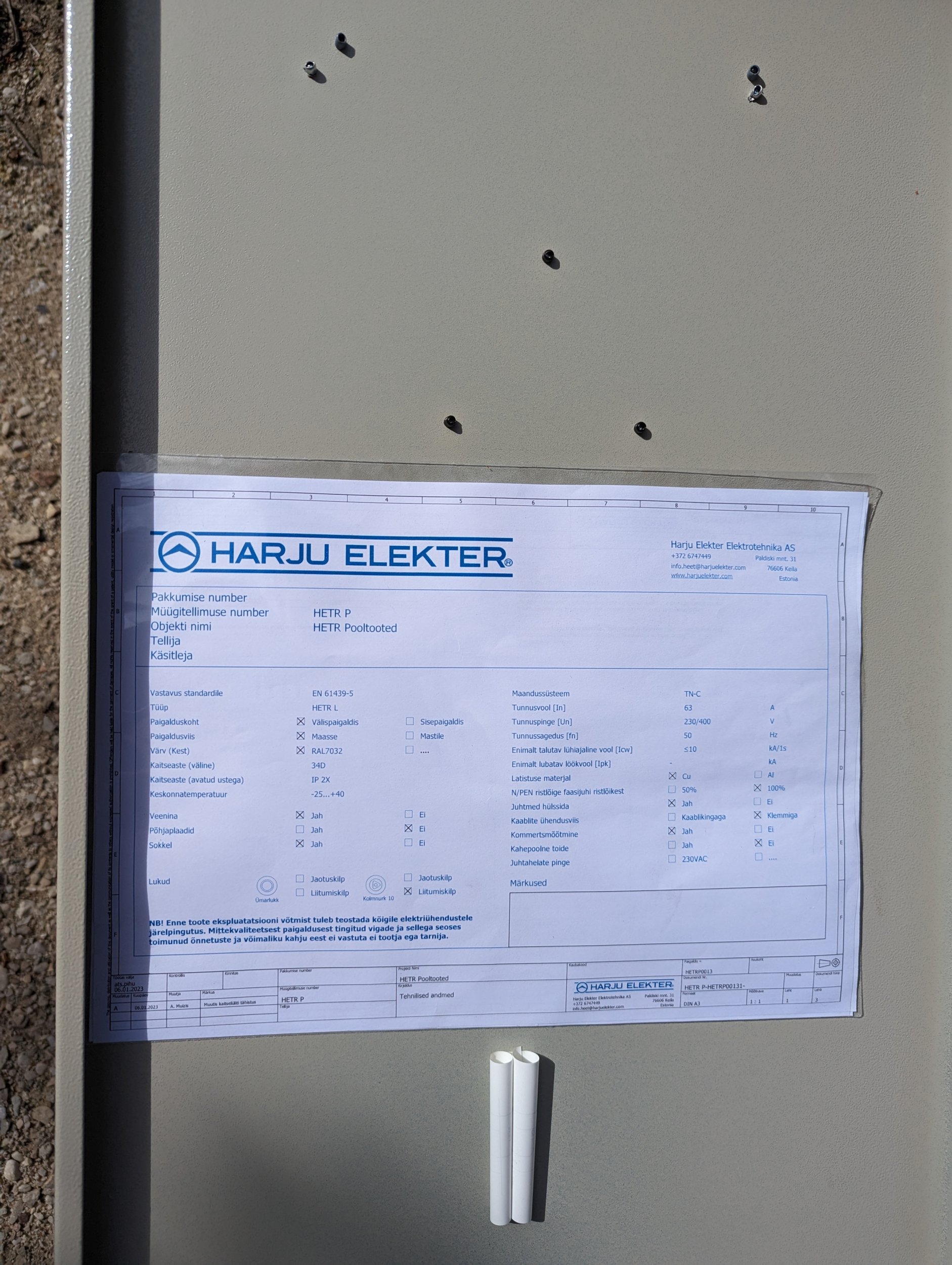 Pakkumises sisaldub kaabel 4G25, kaitsekõri, kilp koos sisuga kuuri, kordusmaandus, deklaratsioon, valgustid, lülitid, pistikupesad.