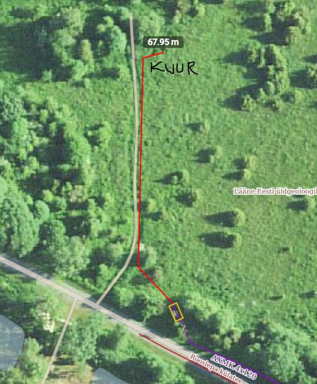 - Paigaldada kõris maakaabel kinnistul asuvast liitumiskilbist kuni kuurini (ca 70 m, eks koha peal tuleb distants täpselt ära mõõta).