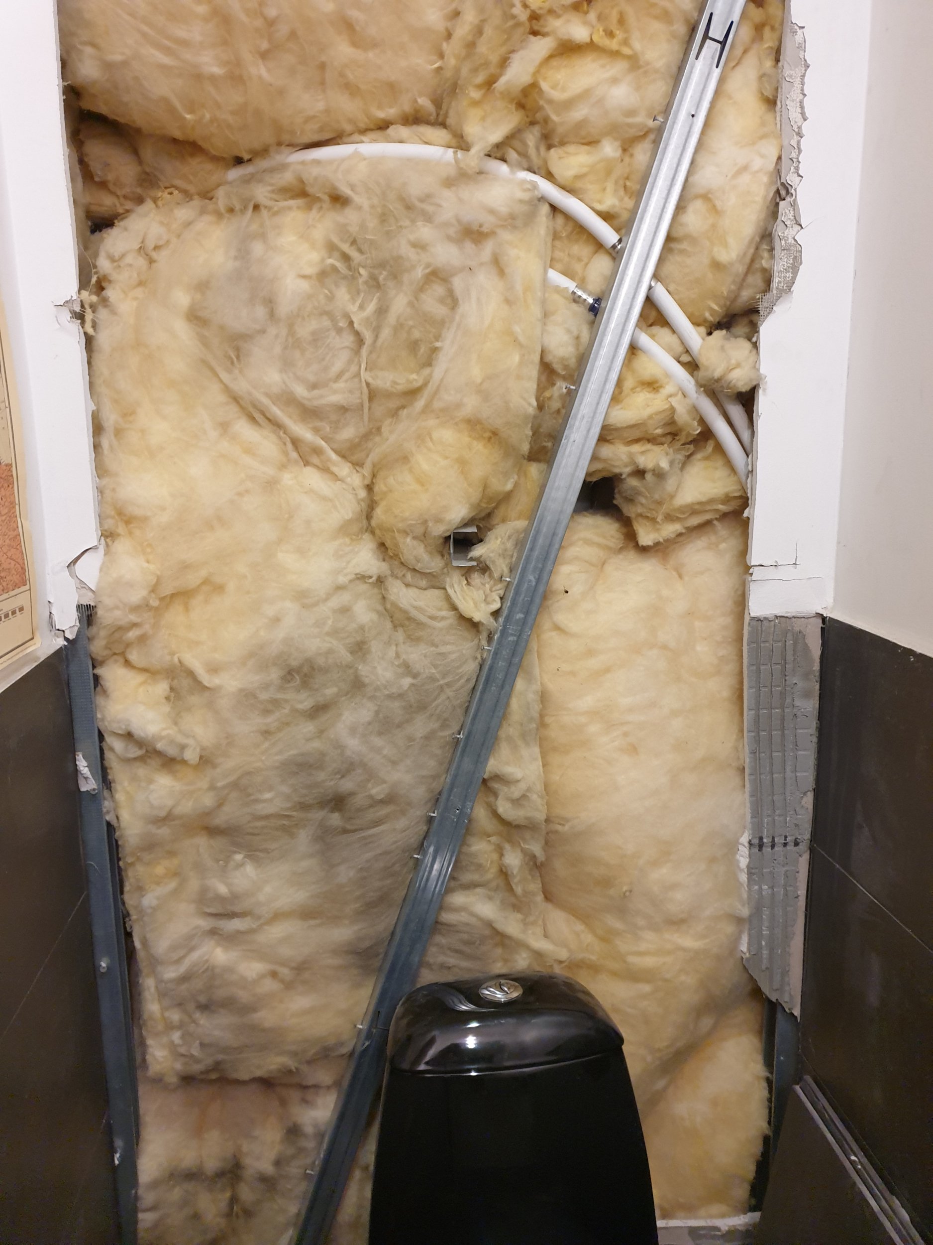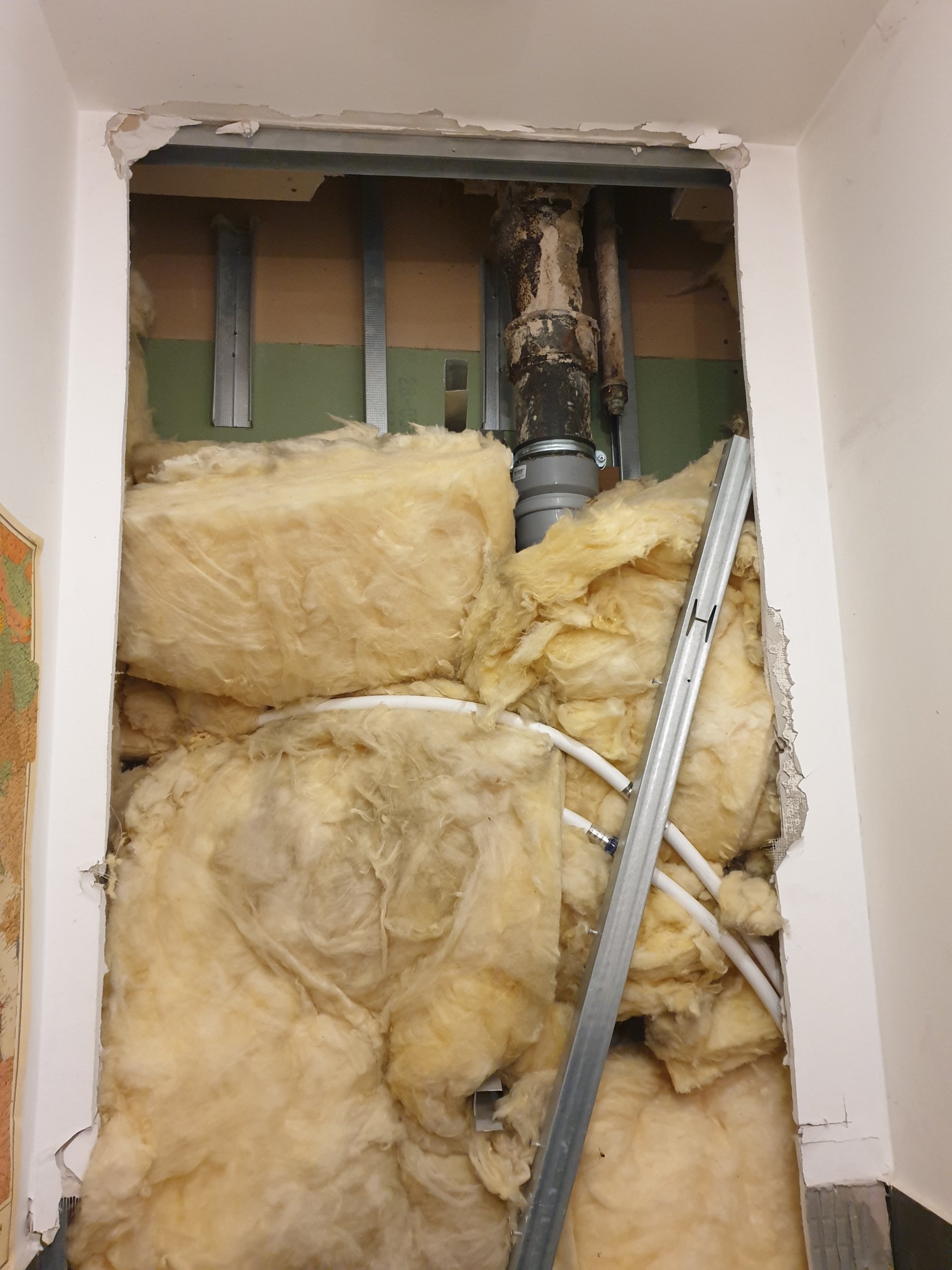 Kanalisatsioonipüstaku vahetuse järel tualettruumi seina remont: kipsplaadi (mõõdud: 95x250cm) paigaldamine tagaseina, sama seina uuesti plaatimine (6 plaati, 95x120cm, plaadid olemas). Tualettpott hetkel põrandal lahtiselt, selle saab töö tegemiseks eemale tõsta ja pärast uuesti kinnitada. Tagaseina pahteldus ja värv jääb omanikule teha.