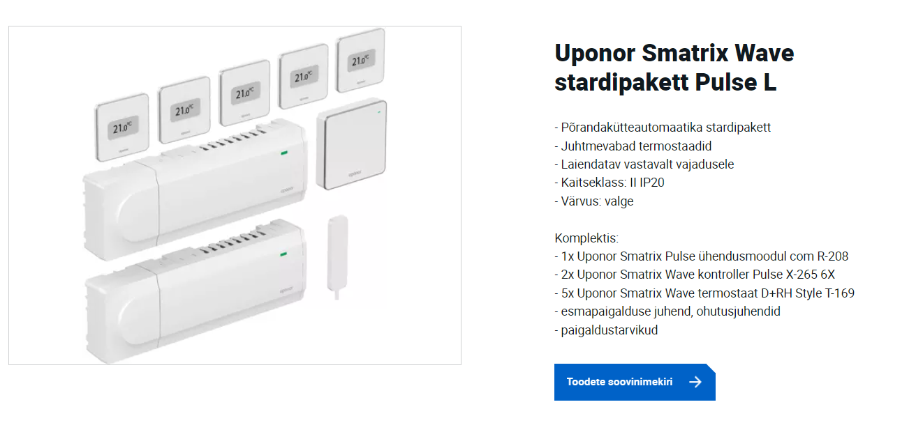Tarvis on installeerida ja seadistada Uponor Smatrix Pulse L komplekt seadmed.