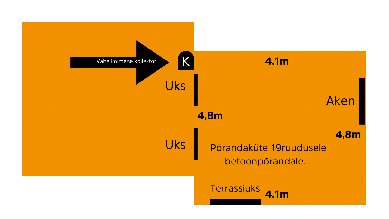 19 ruudusele esimese korruse betoonpõrandale oleks vaja paigaldada põrandaküte. Kile, penoplast, armatuur, vesipõrandakütte toru. Torud on vaja läbi seina viia ning paigaldada vahe kollektor. Ja see vahekollektor on vaja ühendada olemasoleva kollektoriga. Võib pakkumise teha ilma betoonivalamise osata, võib ka koos sellega.