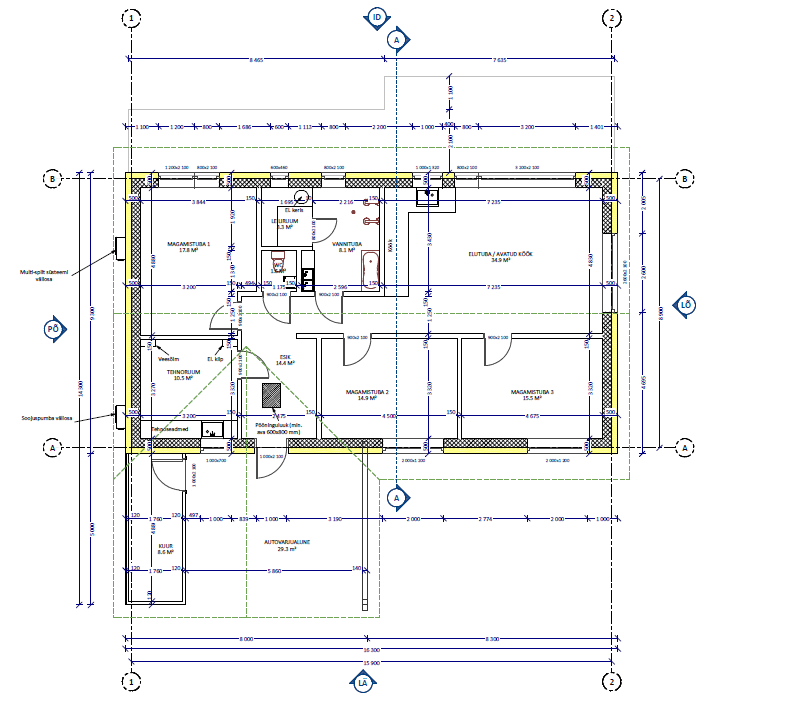 Välisseinad tulevad Bauroc Ecoterm 300. Siseseinad Bauroc Element 150.