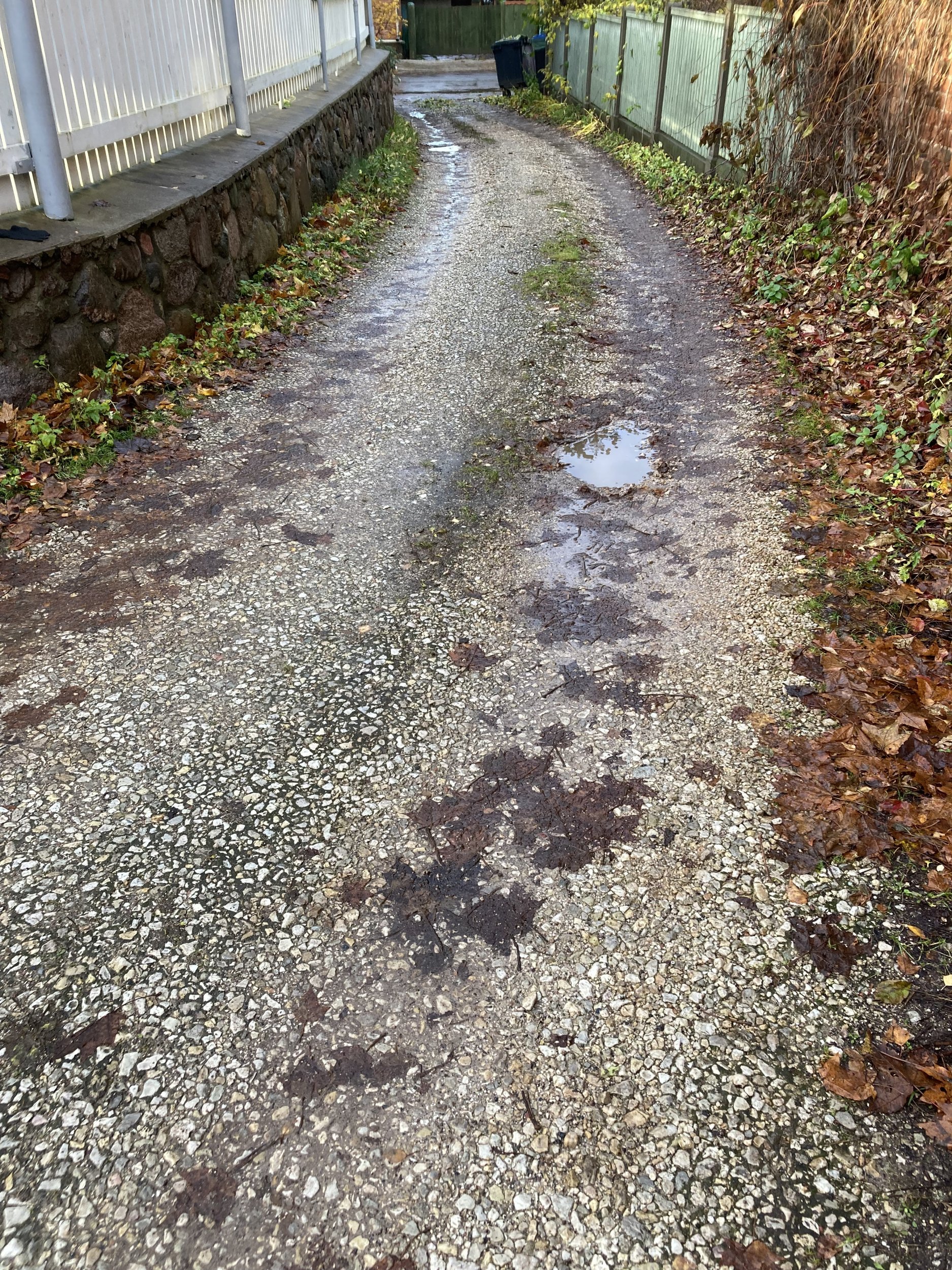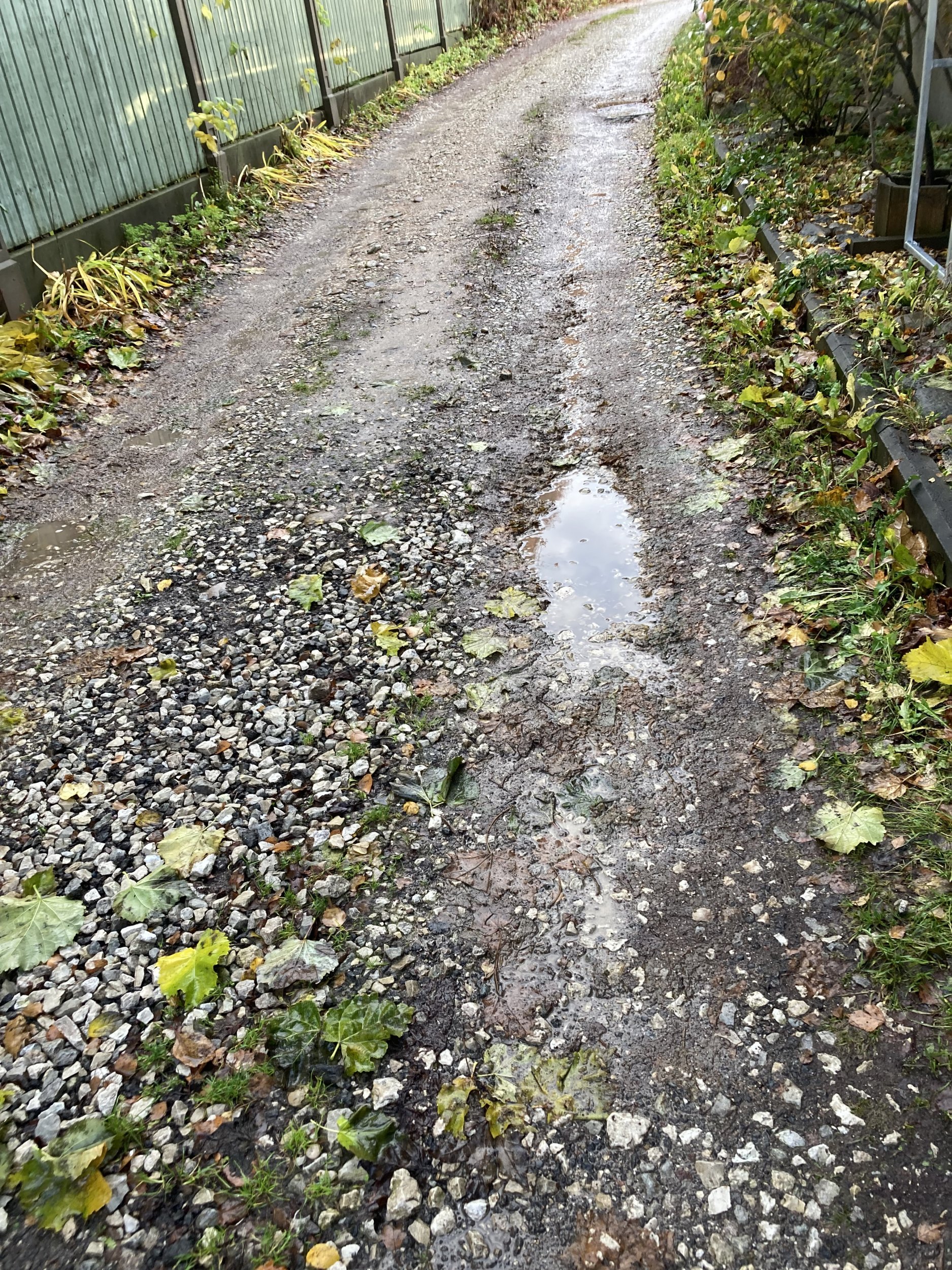 Oleks vaja korrastada Tartus, Karlovas, kahe maja vahel asuv sissesõidutee - max pikkus on 30m ja laius kuni 3m - kõva kruusasegu pinnas, millesse on tekkinud roopad ja seega keskelt kõrgem.
